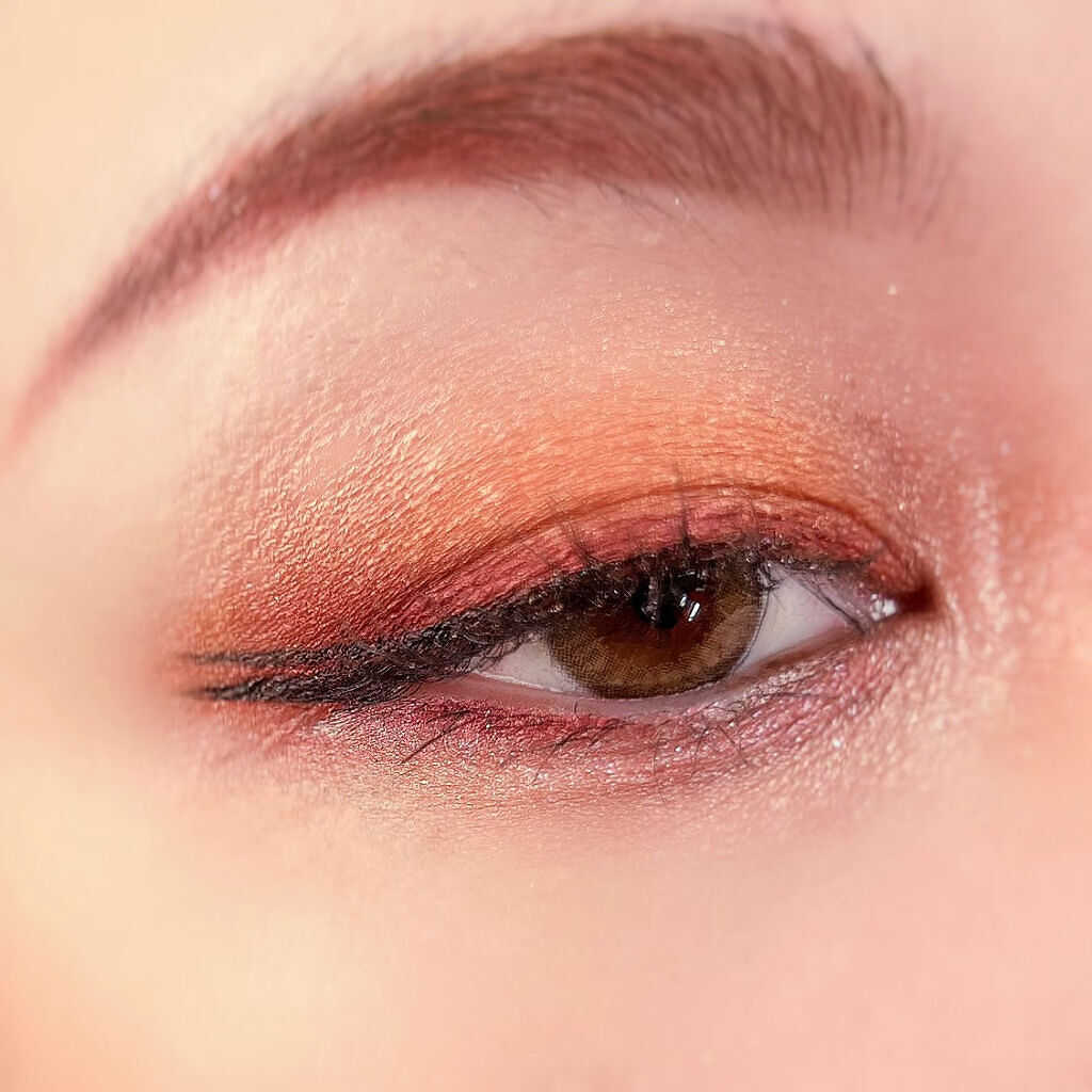 オレンジメイクってめっちゃ可愛いよね🍊❤️ 似合わせめっちゃ研究したさ🌈 マットカラーはマジで似合わんから使うとしても先にラメとかパープルとか仕込んで明るさと透明感をプラス💎✧︎*。 肌トーンをいつもより下げてチークもオレンジよりブラウン寄りをチョイス リップはガッツリパッキリオレンジでも案外馴染んでまとまってくれる🙆♀️ このエルメスのリップやばすぎるくらいパキッとオレンジでいつものメイクに合わせると死ぬほど浮くんよ😂