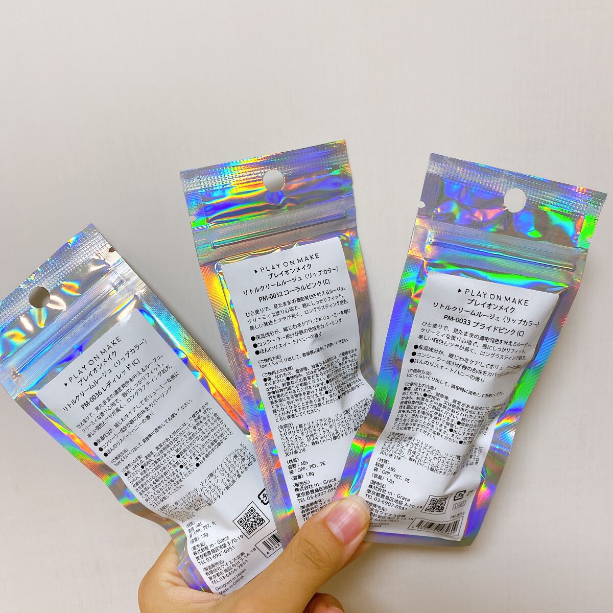 こんにちは☀︎2人の小さな子供がいるので、私の普段持ち歩くリュックにはオムツやおしりふき、飲み物、着替えetc…子供の荷物だけで鞄はパンパン(><)でも、化粧はちゃんとしたいしリップは絶対持ち歩きたい私。そこで、コンパクトサイズのリップ@playonmake様の#リトルクリームルージュを普段から鞄に入れて持ち歩いてます。指先くらいの大きさなのでコンパクトで鞄の中で場所をとりません\(^o^)/ミニコスメなのに高機能でしかも発色や使いやすさも実力派なんです♡私は肌馴染みの良いピンクベージュを使用中です。煌めくホログラムに、キスマークラベルがとても可愛いパッケージです♡パッケージされているので清潔感があって良いですよね(≧∇≦)大人シックなブラックの本体が落ち着いた雰囲気で気に入ってます♡クリーミィな塗りごこちと、見たままの濃密な発色です。保湿成分配合で、唇の縦じわをケアしてくれるので、ボリューミーな唇を演出してくれます♡しっかりメイクしたい時はそのまま塗って、ふんわりナチュラルメイクにしたい時は、ポンポンと軽く数カ所に分けて置いてから馴染ませてます。小さくて値段もお手頃だからいろんな色を試したくなります♡いつもと違った色を試したい方にもオススメです(≧∇≦)LittleCreamRougeリトルクリームルージュ全部で6Colorと自身に合ったお色が見つかります♡CORALPINK/コーラルピンクBRIDEPINK/ブライドピンクPINKBEIGE/ピンクベージュBERRYROSE/ベリーローズLADYRED/レディレッドBURGUNDY/バーガンディ素敵なコスメに出会えたことに感謝です。大切に使わせていただきます♡ありがとうございました!