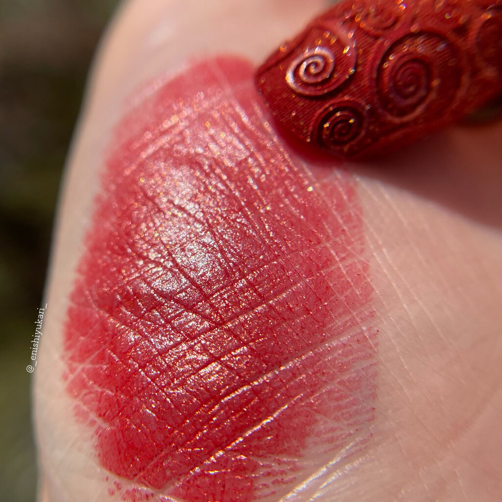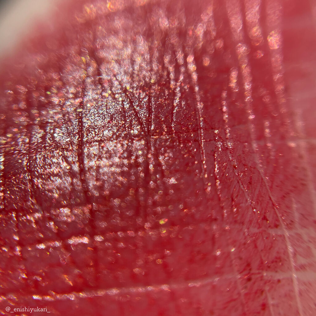 知名度は"接吻"に及ばないかもしれませんが、神秘的で素敵な作品です✨ 煌びやかで多幸感溢れる外観、塗ると一転して肌に馴染む愛らしいカラー。その中でラメが輝いて…。 私にとってのコスメは、そんな親しみと心強さを感じるものです✨