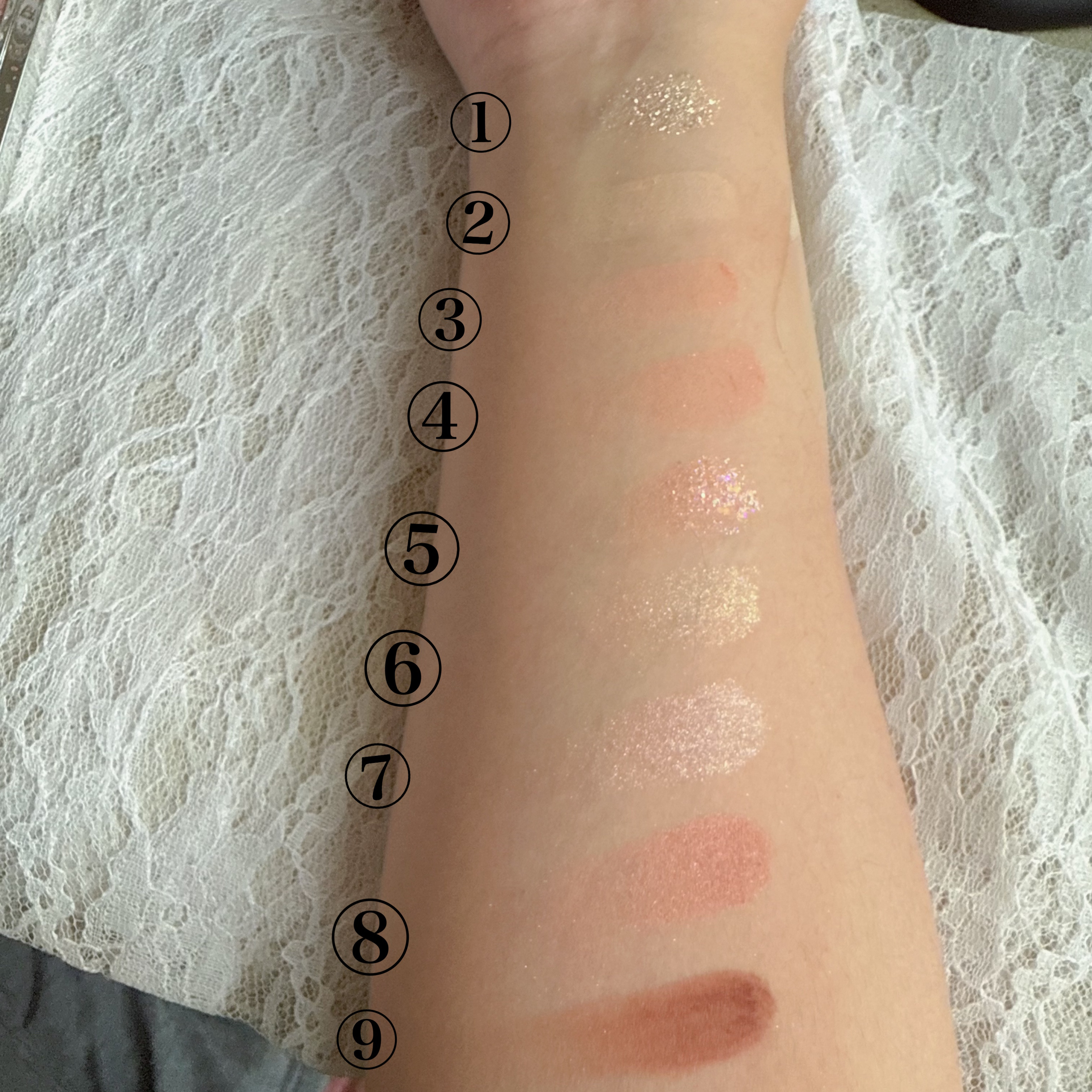 こちらはunleashiaのグリッターぺディアパレットのNo.3AllofCoralpinkを使ってメイクしてみました💄⦅HowTo⦆②を上瞼と下瞼全体に塗る。③を二重幅より上くらいまで塗る。⑧をその上に塗る。⑥を目頭から黒目まで塗る。⑨を目尻に塗って内側にぼかす。涙袋に⑧を塗る。⑨を下目尻に塗る。ブラウンだけだとやっぱり濃くなっちゃって苦手です😵💫ブラウンだと発色が思うようにいかず、濃くなっちゃうんですよね😂でも克服できるように頑張ります(笑)でも、束間まつげが実感だけどできるようになりそこは嬉しかったです🥰#unleashia#アンリシア#アイシャドウ#アイメイク#今日のメイク#さかなのアイメイク🐟#ブラウン苦手さん#コスメオタク#コスメマニア#コスメオタクさんと繋がりたい#コスメマニアさんと繋がりたい#コスメ好きさんと繋がりたい#コスメ好きな人と繋がりたい#コスメ好き#メイク好きな人と繋がりたい#メイク好きさんと繋がりたい#美容好きな人と繋がたい#買って後悔させません#正直レビュー
