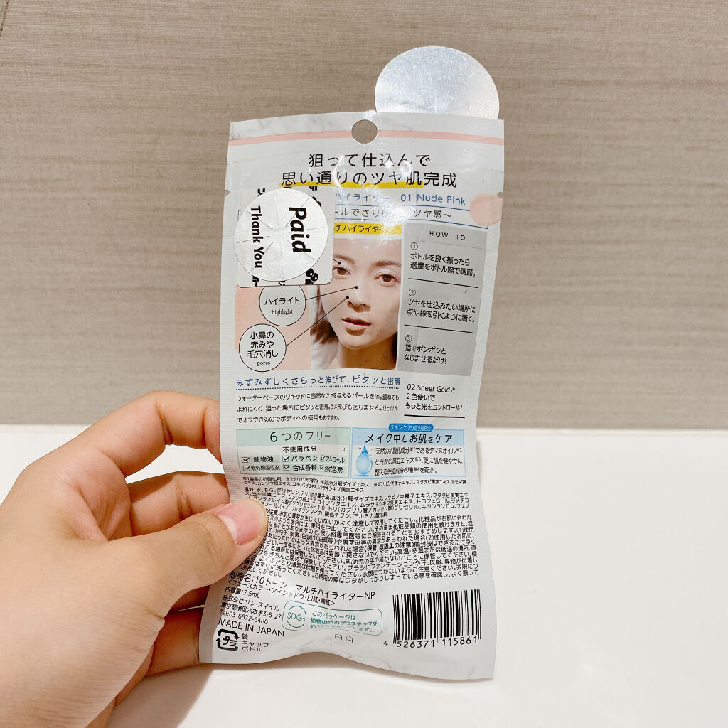 10tune.マルチハイライター/01ヌードピンク光を操って思い通りのツヤ肌完成上品パールでさりげないツヤ感ハイライト 小鼻の赤みや毛穴消し02シアーゴールド光を操って思い通りのツヤ肌完成上品ラメでリッチなツヤ感アイシャドウ チーク リップどこにでも使えるマルチハイライターみずみずしくさらっと伸びてピタッと密着ウォーターベースのリキッドに自然なツヤを与えるパールをin重ねてもよれにくく狙った場所にピタッと密着ラメ飛びもありません石けんでオフできるのでボディへの使用もおすすめ鉱物油 パラベン アルコール 紫外線吸収剤合成香料 合成色素 6つのフリーボトルを軽く振って適量をボトル際で調整ツヤを仕込みたい場所に点や線を引くように置く指でぽんぽんとなじませるだけメイク中もお肌をケアするスキンケア成分配合天然の抗酸化成分であるタマヌオイルと丹波の黒豆エキス 更に肌を健やか整える保湿成分6種を配合#10tune.#マルチハイライター