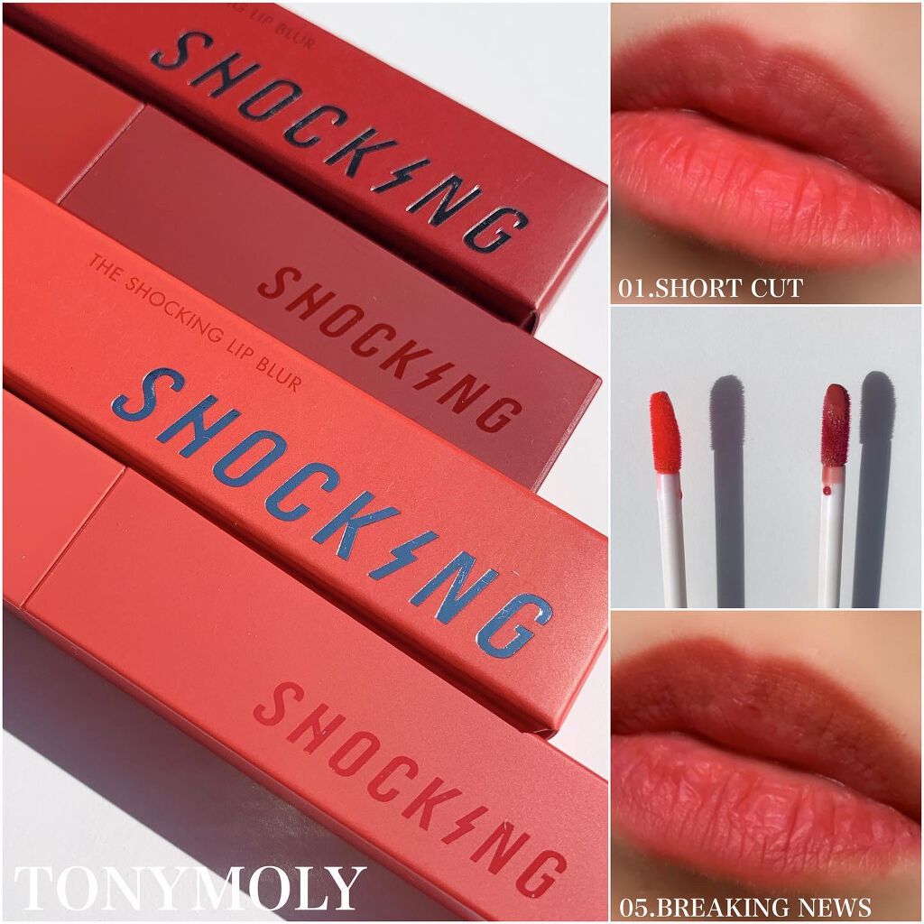 \TONYMOLYザショッキングリップブラー/1.Short Cut3.Thunderbolt5.Breaking News最強に落ちないティント✨なのに蛍光っぽくならずにおしゃれに決まります!!べたっとしないのもいいしめっちゃおすすめのリッ...
