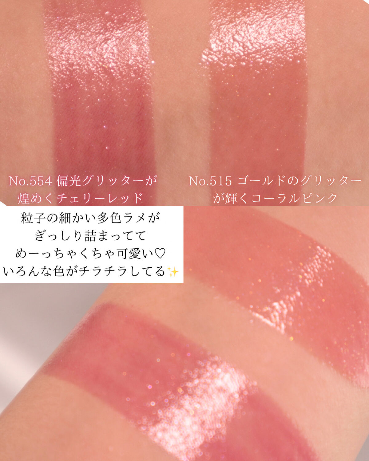 ⠀╲ハイライトが即完売!╱⠀⠀GIVENCHY🍁秋コレクションピンク×キラキラ×限定パケで優勝しすぎた😍GIVENCHY最高♡これからもついて行きます🏃♂️________________⠀⠀✎︎_プリズム・リーブル・ハイライター⠀✎︎_特長⠀⠀・ハイライトには珍しいルースタイプ・パフに出すとGIVENCHYロゴの柄に🥰・ギラつかず自然なツヤ感⠀・ルースならではのフワッとした粉付き・自然に発光しているようなツヤ・ピンクをより強く感じたいときは重ね塗り💖⠀________________⠀✎︎_ローズ・パーフェクト・リキッドNo.515ゴールド系のラメがチラつくコーラルピンク🪸No.554青みっぽい偏光グリッターがぎっしりのチェリーレッド🍒⠀✎︎_特長⠀・97%スキンケア成分配合※顔料成分のぞく・カラーとリップケア成分のマーブル模様・リップケアとしても、ナチュラルメイクの仕上げにも🙆♀️ちゅるんと仕上がるリップが大好きな私の推しシリーズ💄こちらは定番色を全部揃えるくらい好き♡マーブル模様ってところも最高だよね😍私はいつもすぐ皮むけしちゃうけど、これはリップパックをしたようにぷるんとしてくれる✨↓定番色全色レビュー↓https://lipscosme.com/posts/3946737________________⠀✎︎_ローズ・パーフェクトNo.37完熟フルーツのように深みのあるバーガンディレッドNo.525シルバーグリッターが煌めく落ち着いたローズベージュ⠀✎︎_特長⠀・95%自然由来成分・透け感のある鮮やかな発色・高いリップケア効果・リップ下地、リップケア、軽いメイクの仕上げとしてローズパーフェクトのバームタイプ✨こちらも春の限定で買った時に質感に惚れて定番買い足そうとしてた🥰前に紹介したルージュココボームの使用感に近いかも。ルージュココボームのシンプルパケもオシャレで良かったけど、ローズパーフェクトのマーブル模様やパケも可愛くて好き💖リップケアとナチュラル発色のリップが大好き!パケも可愛かったら優勝。投稿を見てくれてるフォロワーさんにはそろそろバレてそう🤣________________⠀激戦とウワサされてたハイライトは事前情報の通りめっちゃ可愛いし使いやすそう😍ルースタイプだから鼻先や目頭の細かい所に塗るのは大変そう。BAさんの言う通り、デコルテにポンポンしたら絶対かわいい💖ローズパーフェクトシリーズは安定の使用感。【発色・色持ち最高】みたいなリップは高確率で皮むけしちゃうんだよね…ケア効果が高くて発色もしてくれるリップ本当にありがたい。しかもパケ可愛くて感謝しかない🥺#givenchy#秋コスメ