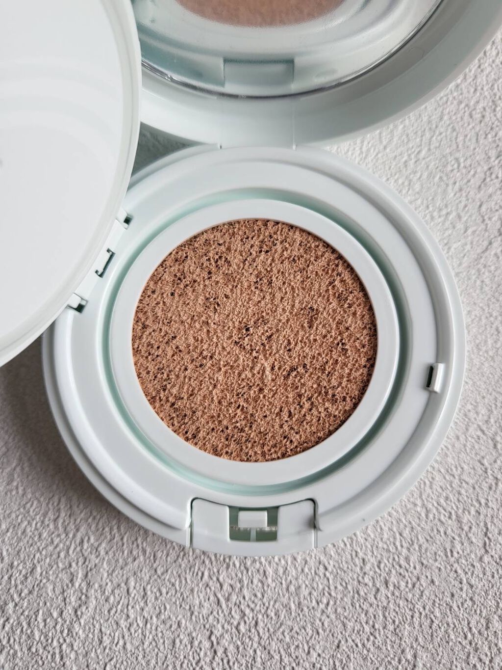 まずサイズに驚きました‼️ 少し小さめのコンパクトケースで厚みもなくてかさばらないので、持ち運びにとても便利に思いました🚗💨💨 しっとりとした使用感でベタつきにくいので、化粧下地がと相性が良ければマスクに付きにくくなりました💓 肌に適度なツヤ感が出た気がして好みの使用感でした🥺 ほのかに香るグリーンフローラルの香りがするので 使う度にいい香りに癒され増すよ🌿