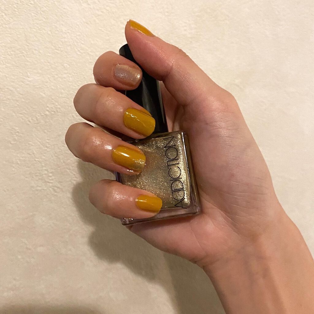 #あさひポリッシュ#アディクション#ザネイルポリッシュL#トパジオス#ザネイルポリッシュ#ムーンダスト@eina_makeupちゃんの黄色ネイルが可愛くて❤️❤️メインはトパジオス。ポイントで人差し指、反対の手は薬指をムーンダスト。バランスを...