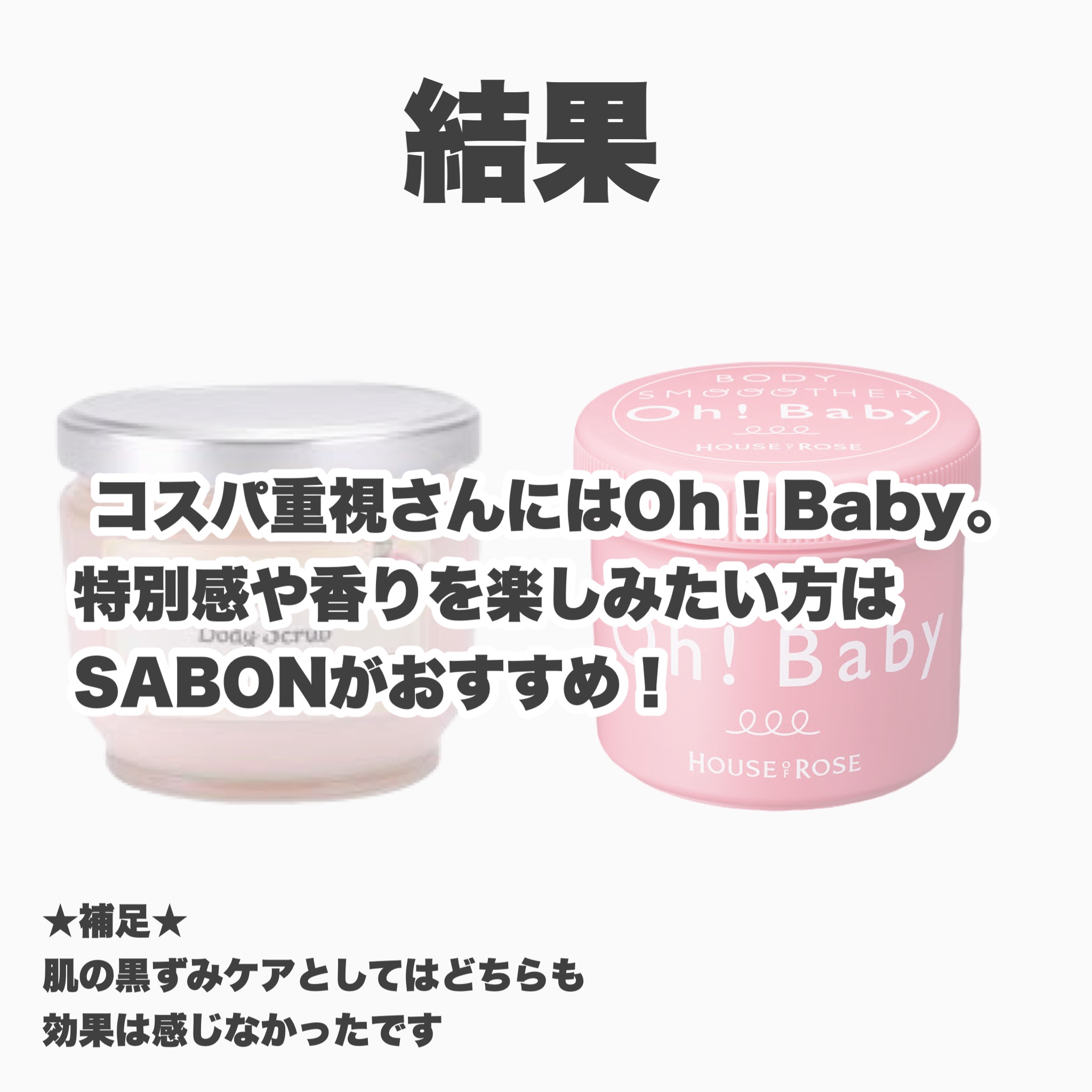 どっちがおすすめ?/見てくださってありがとうございます!本日はSABONボディスクラブとOh!Babyのスクラブの比較をしました!ご参考になれば嬉しいです☺︎★補足★個人的にはコスパを考えてOh!babyをリピート予定です!粒が細かいのでお肌に優しく感じるのと、香りは無香料と期間限定の2種類で少ないですが、期間によって色々香りが楽しめるのもおすすめポイントです。けど、サボンは使用してる時の特別感や、使用後のしっとり感も全然違うので、プレゼントや自分のご褒美には大変オススメです🎁現在はoh!babyを使用後に化粧水やクリームを塗って保湿ケアをプラスしてます!※夏や乾燥肌さんでなければプラスの保湿ケアはなくて大丈夫だと思います◎#sabon(サボン)#ボディスクラブ#ギフト#プレゼント#誕生日プレゼント