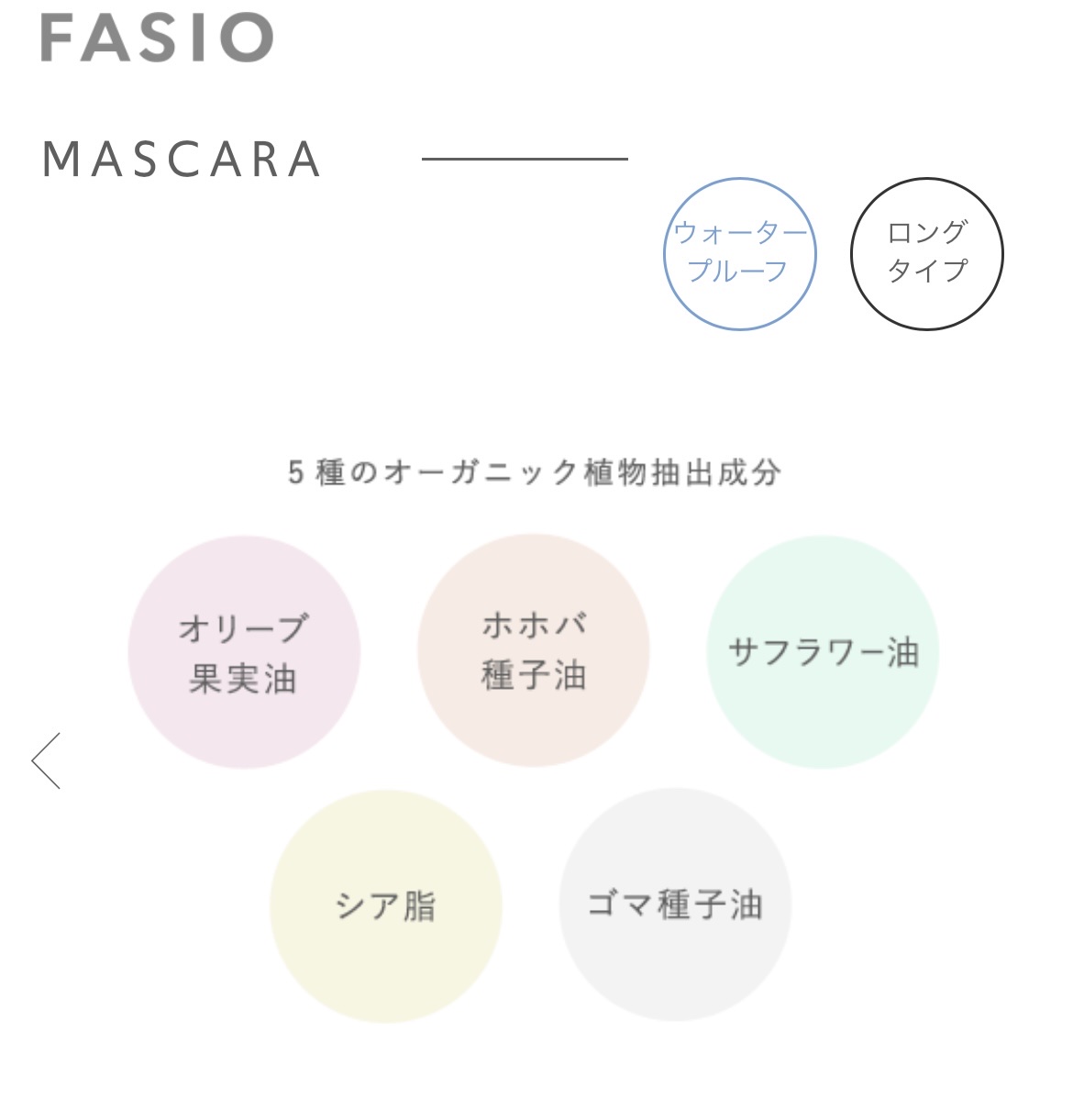 お洒落なパケデザインにくすみカラーも可愛いから、パケ買いしたくなるFASIOのコスメ。 ウォータープルーフなのに、お湯と洗顔でオフができるところと、まつ毛のアップがきれいで気に入りました。 さらにアーチ型のブラシで根元から塗りやすくて、カールキープ力は本当に抜群ですよ! フェザーフィット成分配合で、つけている感じがしない?ふわっと軽いマスカラです。 ウォータープルーフタイプで涙・皮脂・こすれに強いから、マスクメイクの強い味方です。