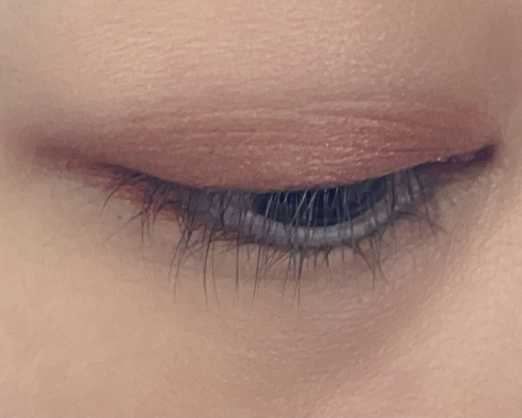 左4カラーと、右4カラーで使い分けができるようですが、左の4カラーだけだと目元がボヤけるので好きなように使うことにしました(๑´ㅂ`๑) 1番左のカラーをアイホールに塗り、右から4番目のパール感が素敵なコッパーよりはオレンジっぽくオレンジよりはピンクっぽいカラーを二重幅に塗りました。 このカラー写真では上手く写ってないですが、オレンジぽくもあるけど光の加減であピンクっぽくもあり、オレンジが苦手でも使いやすくとても可愛いカラーです(๑´ㅂ`๑) しっかり色づくけどナチュラルですごく気に入っちゃいました♪