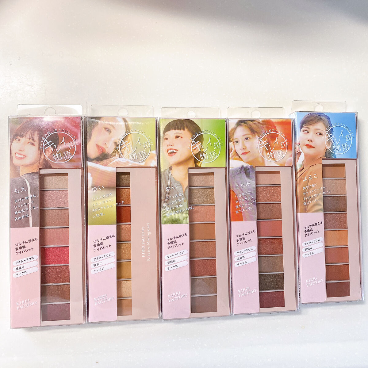 KIREIFACTORY8色アイパレット/01もえ ピンク系02ゆい ブラウン系03めい コーラル系04さとみ ピンクブラウン系05はるこ オレンジ系いろんなカラーが使えてコスパのいいパレット🎨テーマごとに組み合わせてあるので統一感のあるメイクになるしストーリーがあるの楽しい!!#KIREIFACTORY#8色アイパレット