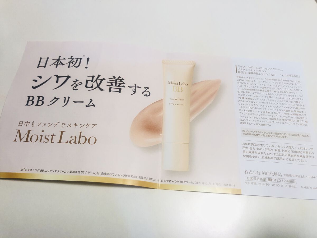 明色化粧品のモイストラボBBエッセンスクリームのナチュラルオークルを使用しました😊日本初シワ改善できるBBファンデーションになっております✨1本で美容液、クリーム、UVカット、化粧下地、コンシーラー、ファンデーションの6つの効果を備えたBBク...