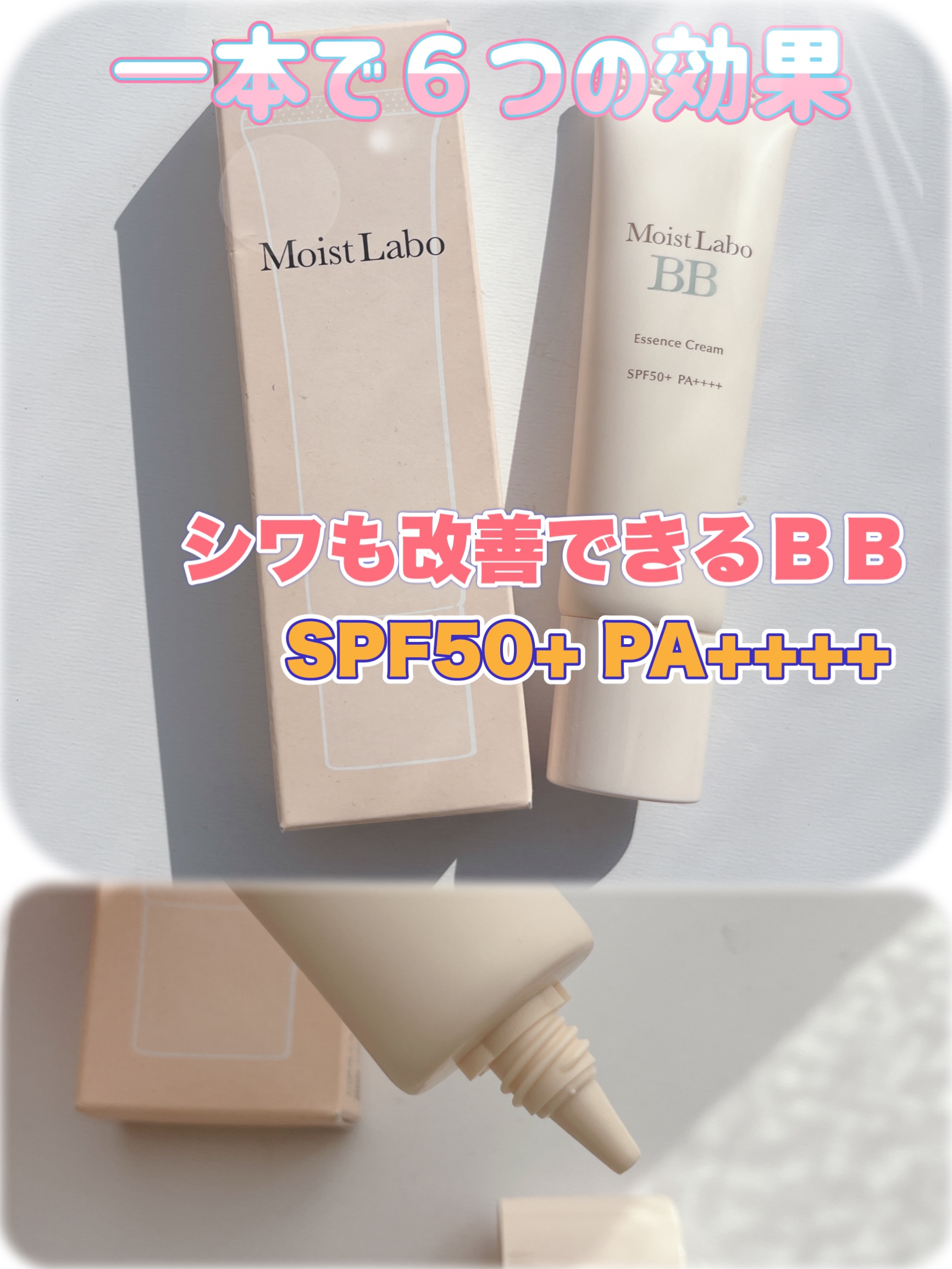 シワ改善できるBBクリーム‼︎⠀モイストラボBBエッセンスクリーム⠀シワ改善有効成分「ナイアシンアミド」配合✩うるおいを補う美容保湿成分、ツボクサエキス(CICA)配合。⠀1本で6つの効果‼︎美容液・クリーム・UVカット・化粧下地・コンシーラ...