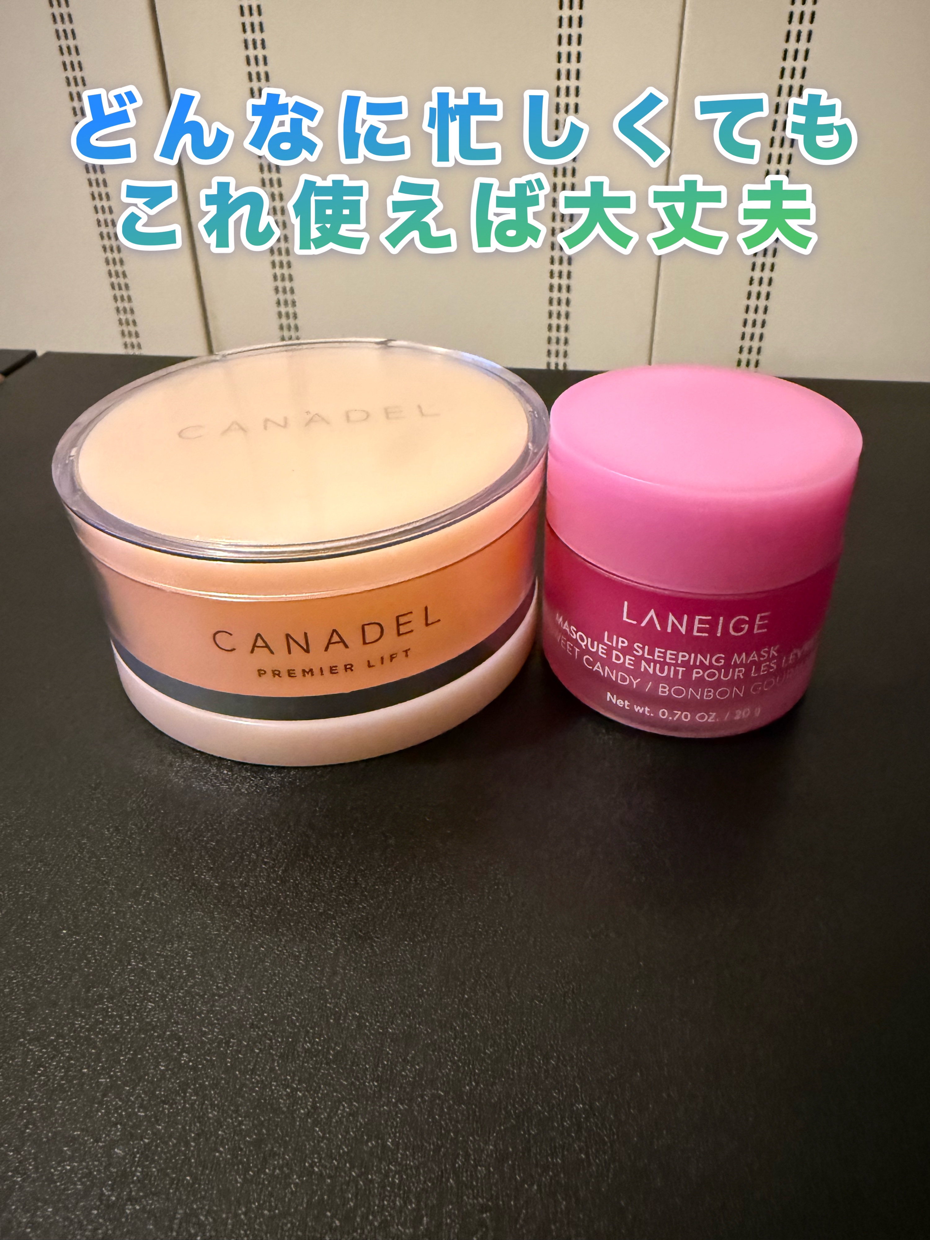 冬用の保湿リップといえばこれ!!▶LANEIGEリップスリーピングマスクスイートキャンディテクスチャーは最初は固め使っていくうちに柔らかくなっていくイメージです!香りは海外のグミみたいな匂い。PLAZAに売っているグミ(HARIBOなど)のような香りがします🍭🍬保湿のされ方としては、唇自体に潤いが届くというよりも、保湿の膜を張ってくれるという感覚があっている気がします!なので少しだけべちゃべちゃ感があると感じる方もいるかも💦個人的には冬にはオーバーなくらいの保湿力が欲しいので、このくらい潤いの膜がしっかりしていると安心します😌ただ、つけてからしばらくは触らないことが大事!すぐに触ってしまうと(当たり前かもしれないけど)、塗った部分がすぐに取れて全く保湿されなくなってしまうので、塗ってから3分くらいはおくのが無難かも!一般的には寝る前用のリップとして使われている印象ですが、私は普段使いとして持ち歩きもしています!若干容器がでかくて邪魔なときもありますが笑、絶対に乾燥せずにぷるぷるな唇を保てるので、とても便利です!#LANEIGE#ラネージュ#リップスリーピングマスク#スイートキャンディ#リップマスク#リップケア#保湿#寒い季節のボディケア