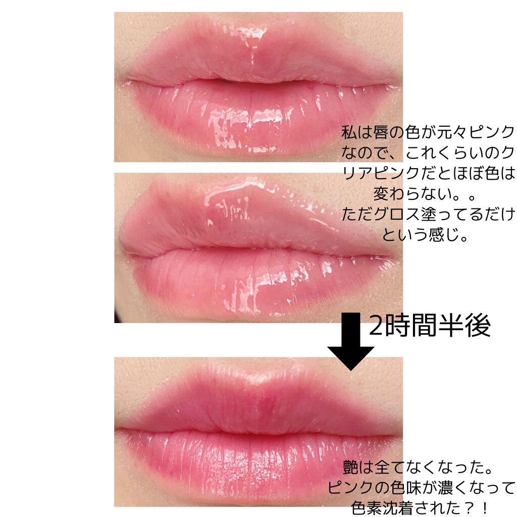 見るからにかわいいクリアピンクのリップグロス💋💕とてもナチュラルな仕上がりですが、素唇の血色感を引き立てて生っぽいリップに仕上げてくれます🥰グロスタイプなので特にマスクの下では色もちがいいとは言えませんが、ベタベタしすぎず潤い感はよいです🙆...