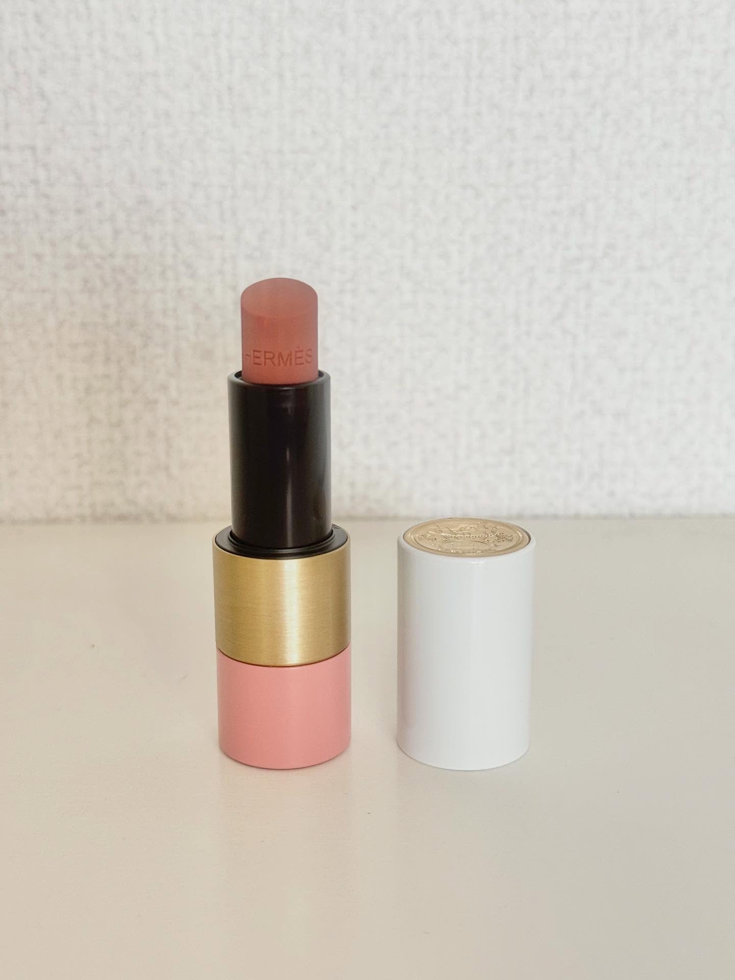 ROSE Hermèsのラインは、ティンテッドリップバームなので、口紅というよりも色付きリップバームという感じでそんなに色はつきません。 けど、色味がほんのりブラウンがかったローズカラーなのですごく使いやすい! とにかくパケが高級感あって、本当にテンション上がる…!! 私もこれから、大切な人へのプレゼントにエルメスのコスメ、いいな〜と思ってます🎁🤍