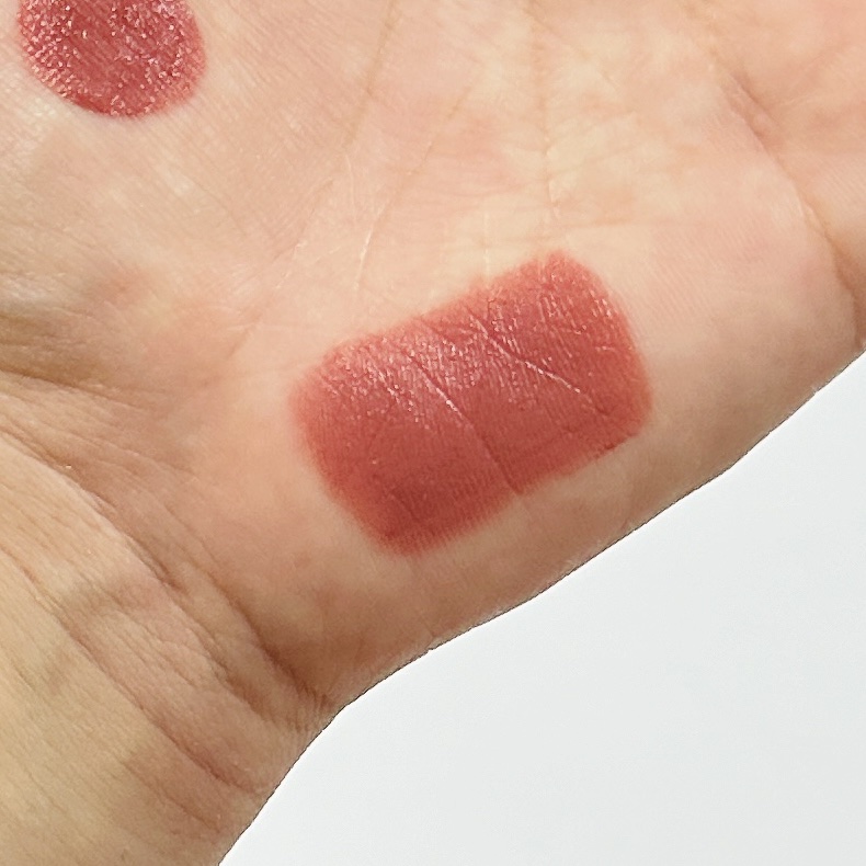 くすみローズカラーがとっても可愛い、上品な雰囲気に仕上がります💗 リップライナーで縁取ることで落ちにくくなる🫰🏻 ティントはセミマットの仕上がりです❣️ 塗りたてはみずみずしいけど、伸びも良く、時間が経つにつれてマットの質感に❤️🔥