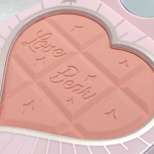 まずはティディベアがカワイイ… 開けたらハートのミラー そしてハートのチークが チョコのようにプレスされている…🥰 お色味はストロベリーチョコレート。 おもいのほかオレンジ系に発色しました。 まぁ、上からニュアンスチェンジもできるし✨ モチベ上がるコスメは大事ですよね😍
