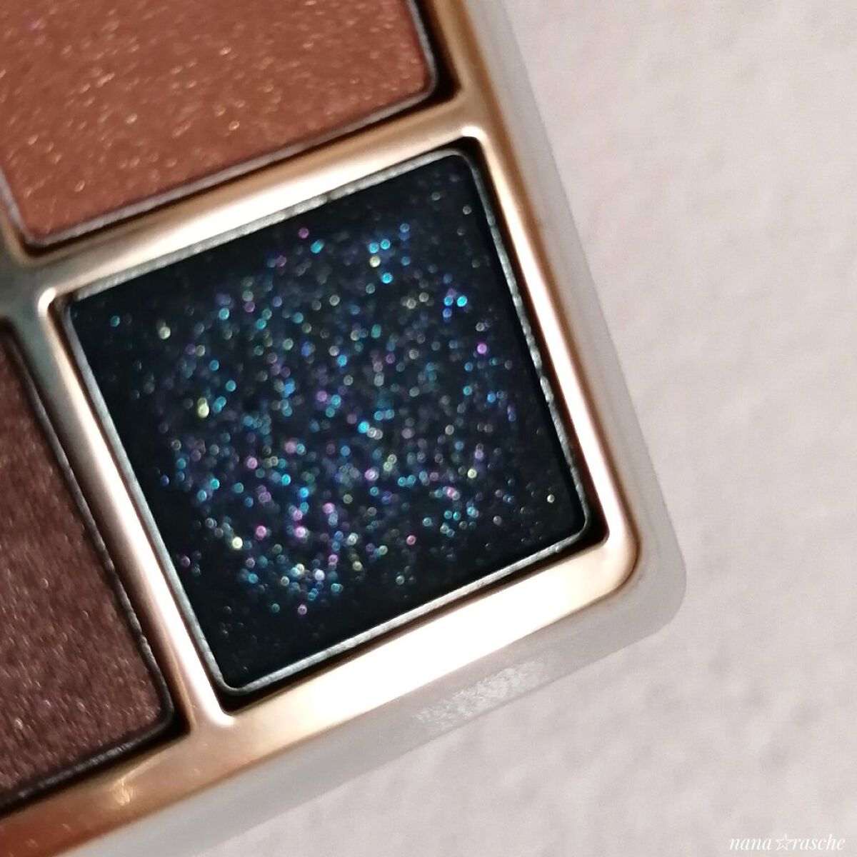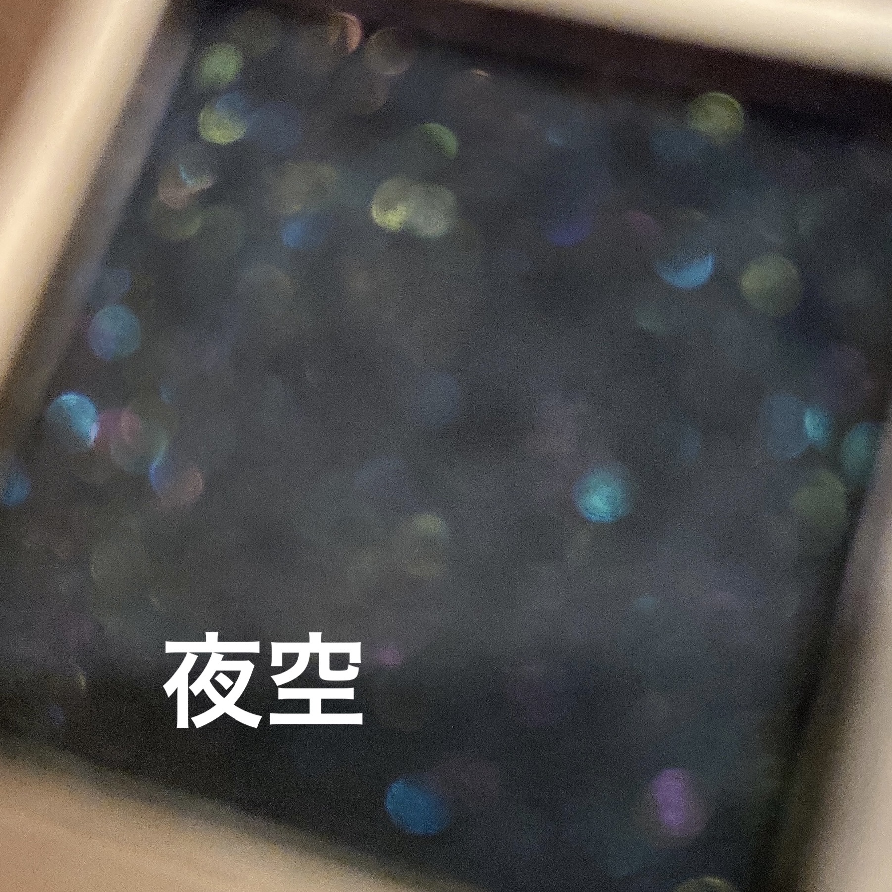 粉飛び、ラメ飛びも特に気にならず発色は淡め。 ラメがザクザク、ギラギラじゃないので どの色も普段使いやすいのが気に入っています。 なんといってもミッドナイトブルーのラメが とても可愛いのですが