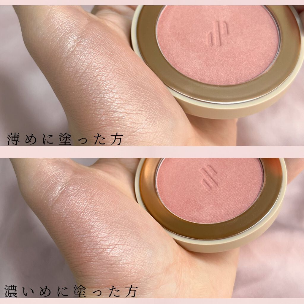 ブラシでふわっと付けるとほんのりツヤ感が✨ 発色もめちゃくちゃ良い訳では無いので使いやすい!! つけてる感はあるのに悪目立ちせずナチュラル🕊 どんなメイクとも相性抜群だと思います!