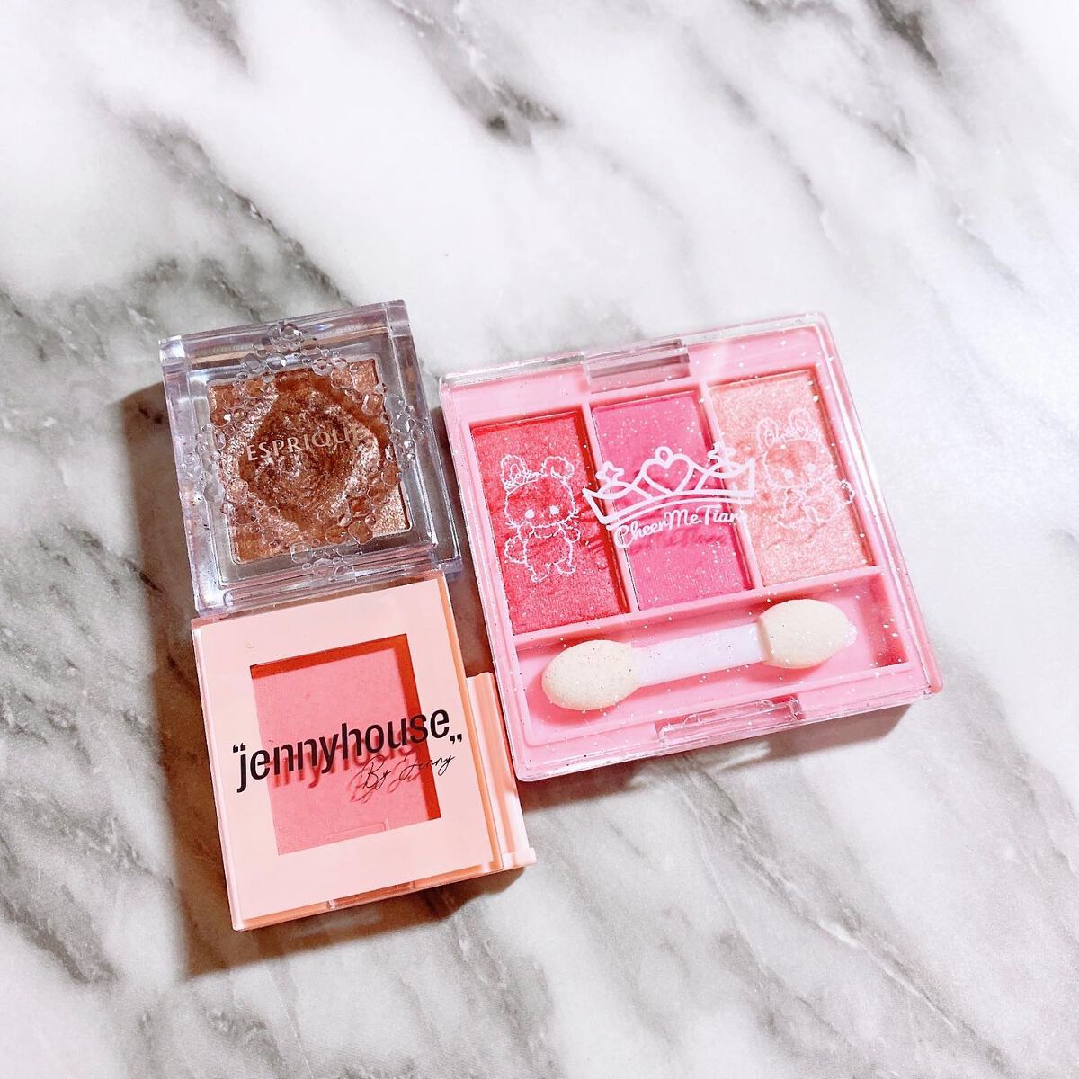 【春の美少女アイシャドウ】こんにちは😃今日はjennyhouseのアイシャドウを紹介します!くっつけられるようになっているパッケージで、お気に入りのカラーをカスタムできるのが嬉しいです💕今回紹介するのは01と05のカラーです🍑春らしいパステル...