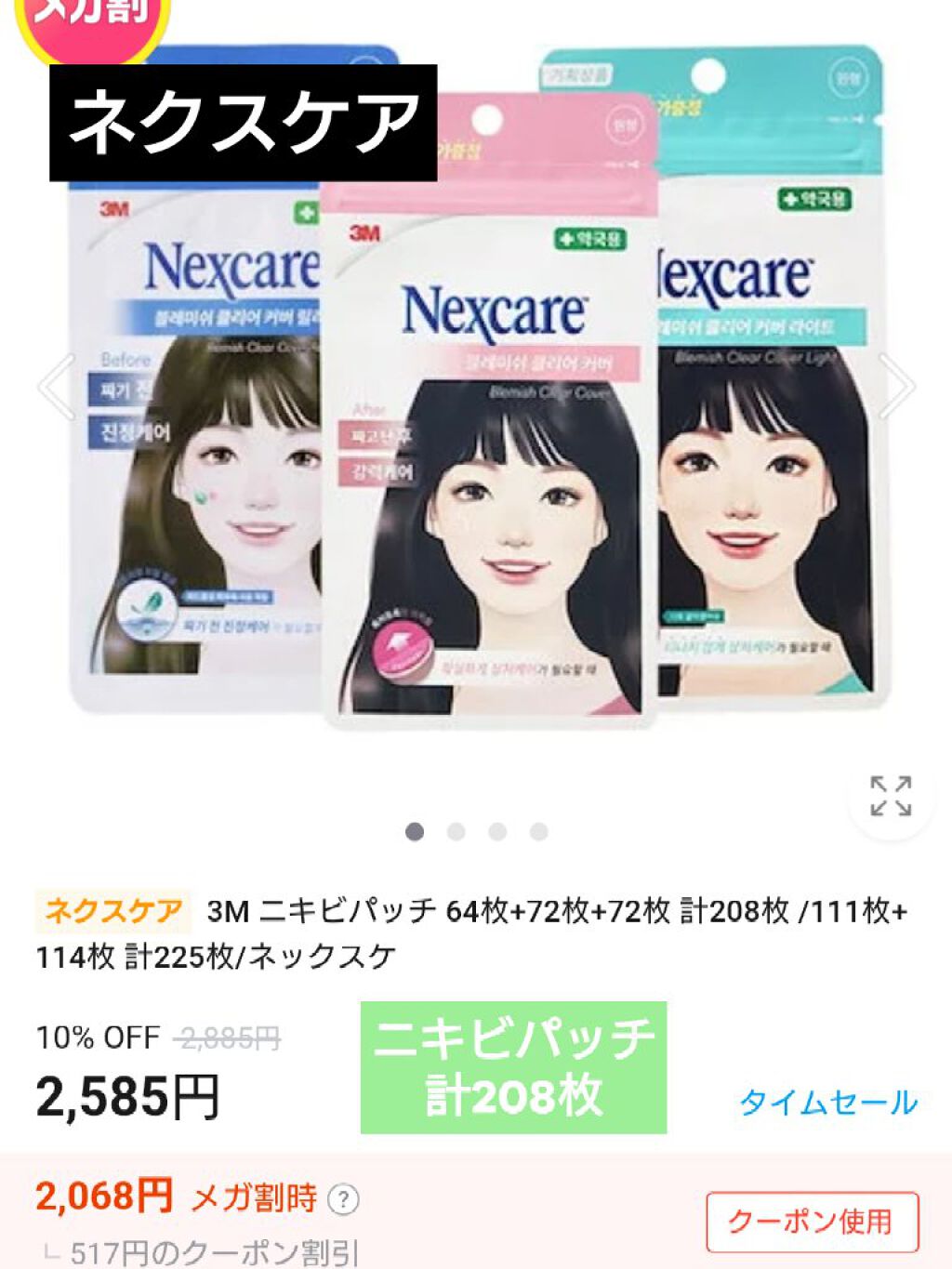 Qoo10メガ割購入品!3/3~3/6までの第3弾!2/25から始まった今年最初のQoo10メガ割!最後も3日になった途端3つ買ってしまいました!色々悩んで買った3品です!①サムバイミーミラクルボディクレンザー&ミラクルボディローション400g+250gメガ割で2680円→さらにショップクーポンで200円オフ2480円背中ニキビ対策として購入してみました!本当はメディヒール買おうと思ったんですがこっちのほうが安かったので!②ONETHINGカワラヨモギ化粧水/ARTEMISIACAPILLARISEXPRACT300ml×3本メガ割で3117円赤み対策と、お風呂の中での乾燥対策として良かったのでストックです。独特の匂いが好きです。③3MnexcareNexcareイージーピール、リリーフ、ライトイージーピール64枚+72枚+72枚=208枚メガ割で2068円ニキビパッチです。今はVTのを使っていますが、他のも使ってみたくて購入しました。初めてちゃんと悩んですべて使い切ったQoo10メガ割でした!次は6月!またこれから何を買おうか悩んで決めたいと思います!