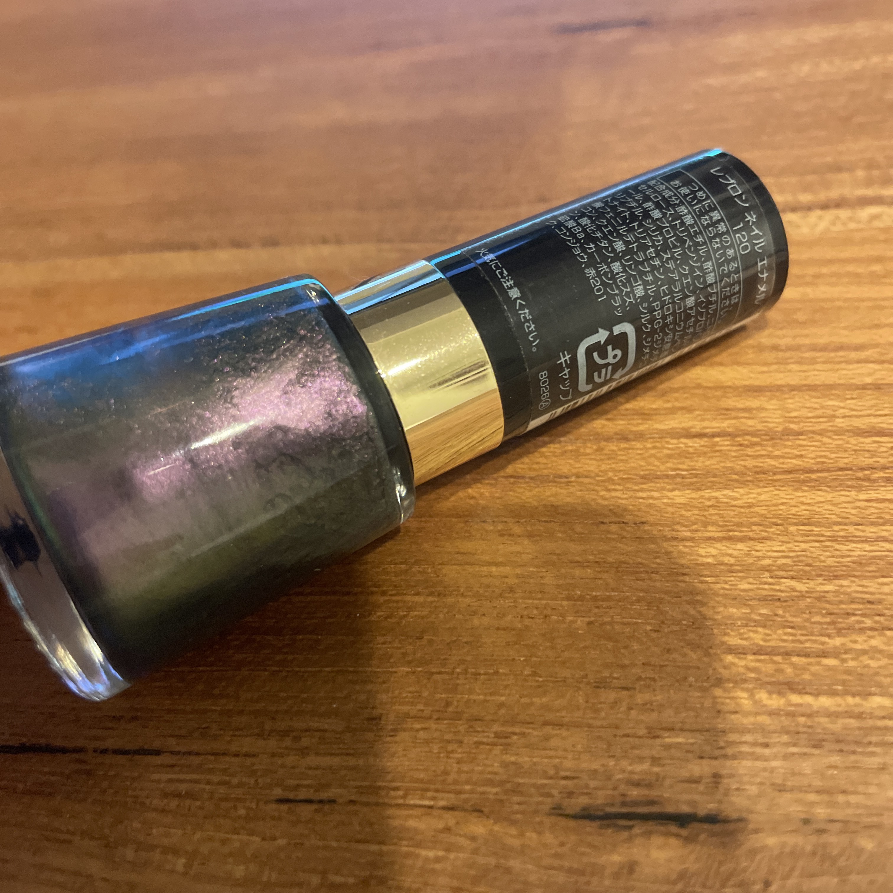 REVLONネイルエナメル120アメジストスモーク店舗でたまたま見つけたレブロンの限定ネイルグレイッシュパープル系(メタリックパール)と公式では紹介されています偏光パールが綺麗な玉虫色という感じ光の当たり具合で色がパープル寄りだったりグリーン...