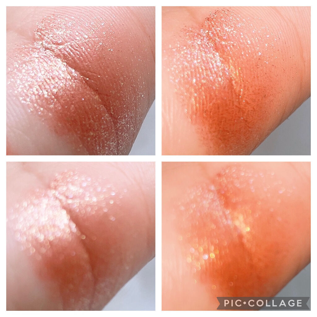 このザクッザクのラメでこの発色! トッピングとしてのラメではなく、メインとしてラメを使えるの ラメ好きとしてはアガる⤴︎︎⤴︎︎ 触るとぷにぷに質感なので、指塗りがおすすめ🤞🏻 指塗りの方がより発色も良くなります! オレンジブラウンって使いやすい〜〜! 涙袋に乗せてもオシャレになるし、 毛が密集した細いブラシでアイラインっぽくのせても可愛い⸜❤︎⸝ 広範囲なら圧倒的に指塗りがおすすめだけど、 ポイントなら毛が密集したブラシが◎ 毛が荒いブラシだとラメが飛びやすいです💦 涙袋とかの指だとはみ出しちゃう範囲は チップの先とか使うと色もラメ感も綺麗に乗ります!