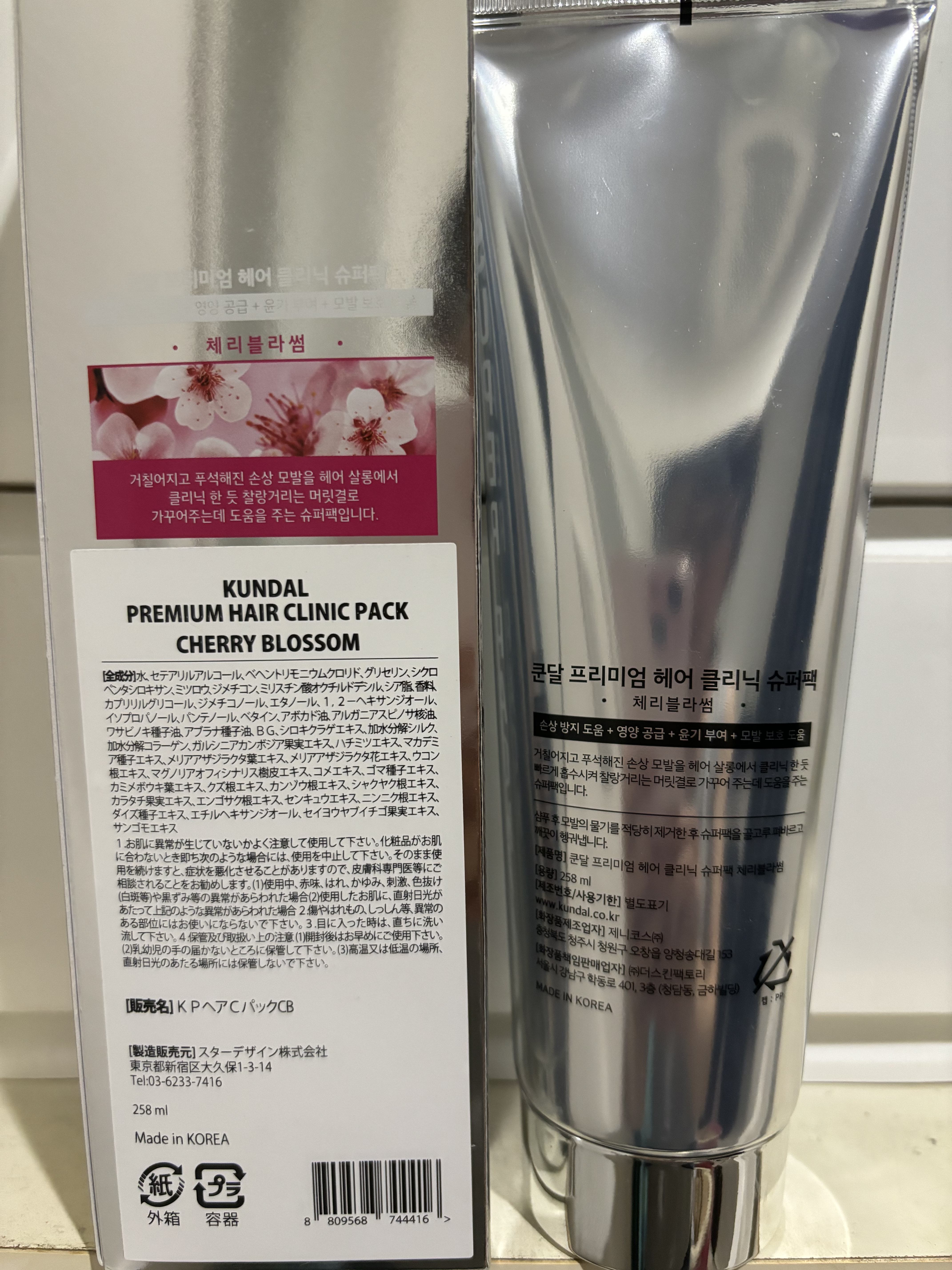 KUNDAL様よりいただきました。香りはランダムで、いただいたのはチェリーブロッサムの香り🌸チューブから出しても形が崩れないほどの、かたいテクスチャー。でもこのテクスチャーから想像したよりも軽い仕上がりでした。ヘアパックは重い仕上がりが苦手で...
