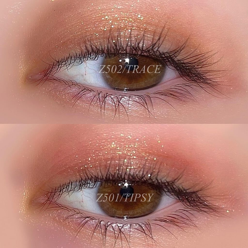全色ラメが可愛くて濡れツヤ感のある仕上がりになります⚑︎⚐︎ Z501/Tipsy 赤みブラウンのカラーです🧱 肌に塗るとしっかりレンガ色に発色してくれます! 中粒のゴールドラメが沢山入っていて上品です𓂃 𓈒𓏸赤みが強いのでブルベさん向きだと思います😏 Z502/Trace イエローブラウン系のカラー🌻 小粒と中粒のゴールドラメが入っています!角度によってラメがグリーンっぽく輝くのが素敵🧐 イエベさん向きだと思います! テクスチャーはしっとりとしていて、発色が良いです👌 Z501は絶妙な色合いで単色でもアイメイクが完成するのでお気に入りですᜊﬞﬞ 𓈒𓏸