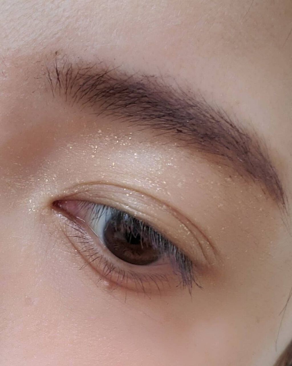 夏っぽいアイテムが欲しくなり購入したtan。ベージュカラーベースにラメ✨付け方にもよるかもしれませんが、比較的大粒なのにギラギラしないナチュラルな仕上がりです🐥目尻や目頭などポイントで使用することもありますが、ガッツリまぶたに塗るのも可愛いです^^細かいラメが好みであればlemoncardの方がいいと思います🌿#rihka#アイポリッシュ
