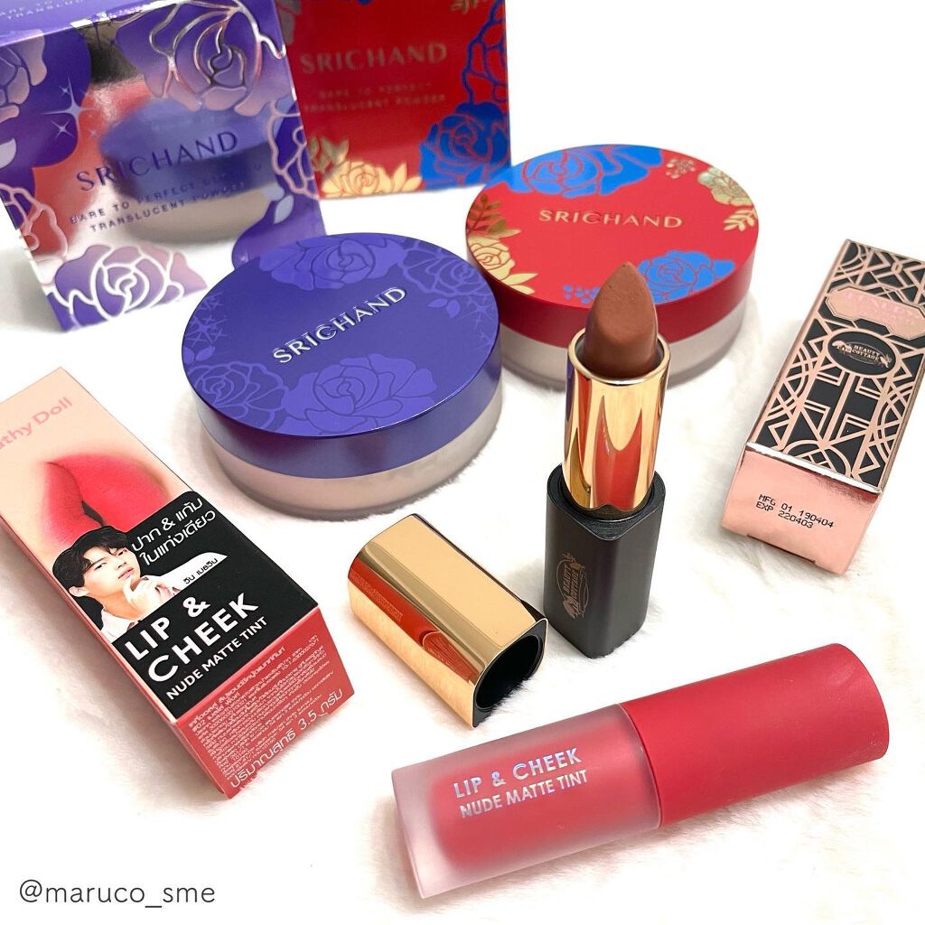 人気上昇中タイコスメ🤍最近ネットや店頭で見かけることが多くなったタイコスメ✨見た目も可愛くて優秀なアイテムをご紹介します👏【CathyDoll】リップアンドチークヌードマットティントM02MellowPinkこちらはマットタイプのティントでチークとしても使えるアイテム🌸ふわっとした質感に仕上がるのでめっちゃかわいい!やわらかなピンクは持っておくと万能に使えて便利です😘色もちもいいのでマスクメイクでも安心◎-------------------------【BeautyCottage】LUXURYリップスティックベルベットマットNo.3シンプルで高級感のあるパケ💎✨蓋はマグネットでぱちっと閉まるタイプです!クリーミーな質感で唇に密着💋マットですが乾燥はあまり気にならなかった🙆♀️大人な表情に仕上がるこっくりベージュがすき♡-------------------------【SRICHAND】ベアパーフェクトグローイングトランスルーセントパウダー内容量10gなめらかなきめ細かい粉質のフェイスパウダー。微細なパール入りでツヤッとした仕上がりに♪透明感を引き出してくれてぱっと明るさがでる😳👏さらさらなのにパサつかなくてめっちゃいい!!付属のパフもふわふわ🤍-------------------------【SRICHAND】ベアパーフェクトトランスルーセントパウダールナニューイヤー内容量:10gこちらは旧正月版パッケージで数量限定発売。通常版は来年の4月1日より発売です✨このパウダーさらっさらで化粧崩れしにくい😍!粉質がきめ細かくてふんわりヴェールをかけたような仕上がり。パサつかないのにテカらないって優秀すぎる!👏-------------------------今回ご紹介したトレンドコスメが揃うECサイトコスメラボのお得なセール情報です🎉【期間】12月26日(日)0時から1月7日(金)23時59分までセールではタイコスメだけでなく中国コスメも対象なのだとか!プチプラで機能的なアイテムがたくさん揃っているので是非チェックしてみてください♪.。.:*・゚+.。.:*・゚+.。.:*・゚+.。.:*・゚+.。.:*・゚+少しでも参考になりましたら🤍📎👭ぽちっとお願いします♡#コスメラボ#タイ大sale#タイコスメ#第三メイク#スワイメイク#cathydoll#キャシードール#ラブキャシー#ドーリーメイク#beautycottage#ビューティーコテージ#SRICHAND#シーチャン#ベアパーフェクトトランスルーセントパウダー#ベアパーフェクトグローイングトランスルーセントパウダー#フェイスパウダー#ルースパウダー#口紅#リップ#ティント#海外コスメ#プチプラコスメ#本音レポ
