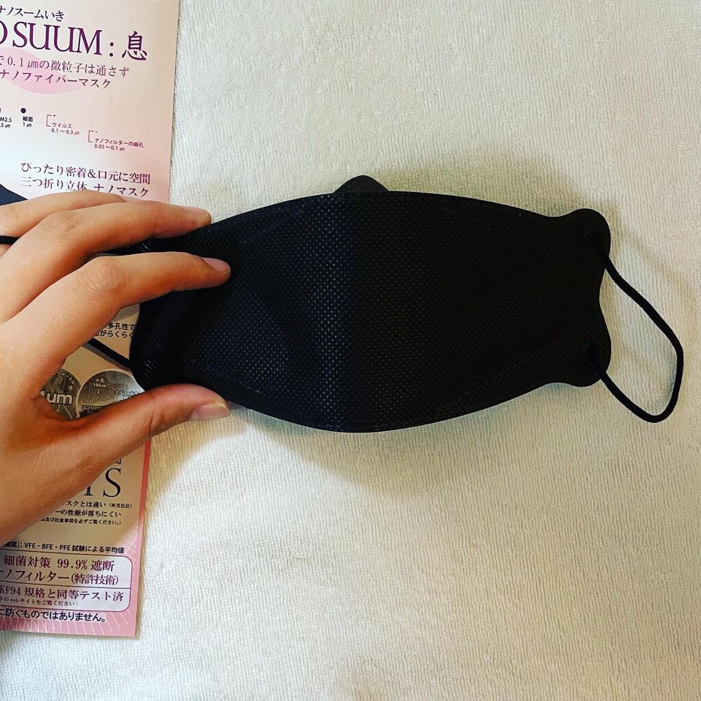 まずは、NANOSUUM😁色はブラックと白があるんだけど今回はブラックを使用してみたよ🥺初めてこのような形状のマスクを使用してみたんだけど、、、、口元が開くのでほんとリップとかしてても付かないのにビックリ😊また、しっかりとお顔にもフィットして...