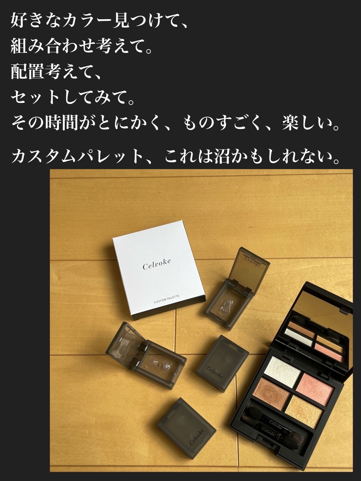 好きなカラーを見つけて、どんな風に組み合わせてメイクしたらカワイイかなぁ…とか考えながらセレクトして、実際に手元で配置も考えて、並べてセットするのがとっっっても充実した楽しい時間でした🥰 これは、沼りますね…😇 パステルなパレットって見た目がカワイイからいつも見るたびに「カワイイ!欲しい!」ってなるんですが、似合わなさそうなカラーが入ってることが多くて…🥲(私の場合ラベンダーカラーやシルバーとかがツラい…) 既存のパレットを買うよりも正直、、コストはかかっちゃいますが、、、自分だけの自分に合うカラーでパレットが作れちゃうのはそれはそれでアリだなぁーって思いました💕