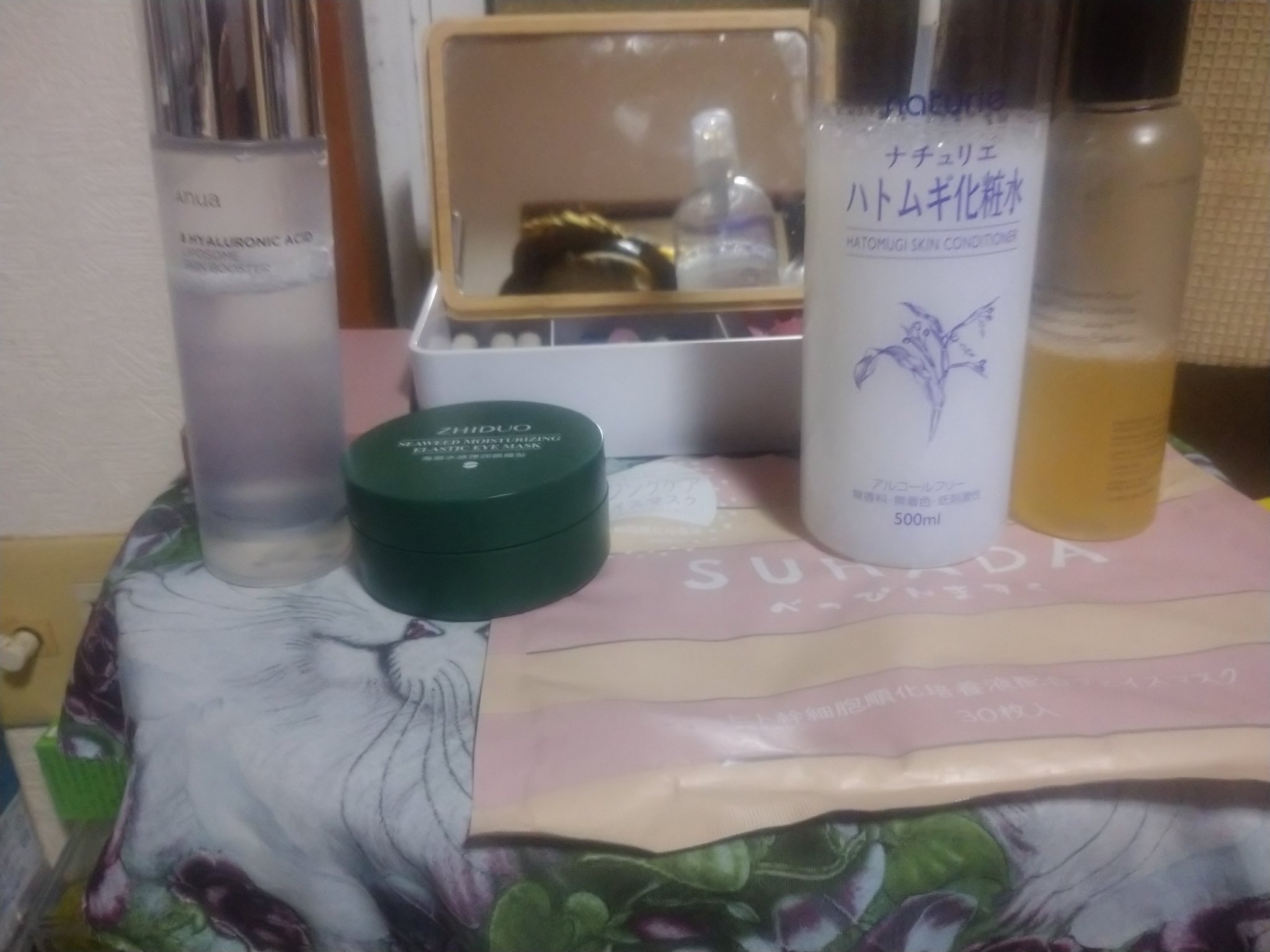 🌃夜のスキンケア記録用MEDICUBEゼロ1DAYエクソソームショット2000➔StayFreeSUHADAべっぴんますくヒト幹細胞順化培養液➔ナチュリエハトムギ化粧水ナチュリエスキンコンディショナーR、COSRXフルフィットプロポリスシナジートナー➔DAISOマイスキンケア美容液コメ発酵液、MEDICUBEPDRNピンクアンプルPDRN10,000ppm配合、Anuaレチノール0.3ナイアシンリニューイングセラム➔DinKissColor:M01#リンクル棒*、JOMTAM黄金キャビアアイクリーム➔Anuaレチノール3ペプチドナイトリペアクリーム