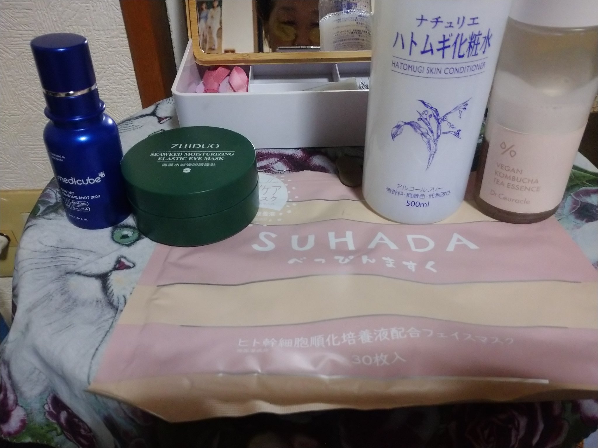 🌃夜のスキンケア記録用MEDICUBEゼロ1DAYエクソソームショット2000➔StayFreeSUHADAべっぴんますくヒト幹細胞順化培養液アイマスク➔ナチュリエハトムギ化粧水ナチュリエスキンコンディショナーR、Dr.Ceuracleヴィーガンコンブチャティーエッセンス➔無印良品薬用クリアケアブライトセラム、MEDICUBEPDRNピンクアンプルPDRN10,000ppm配合、COSRXフルフィットプロポリスライトアンプル➔DinKissColor:M01#リンクル棒*、JOMTAM黄金キャビアアイクリーム➔Anuaレチノール3ペプチドナイトリペアクリーム