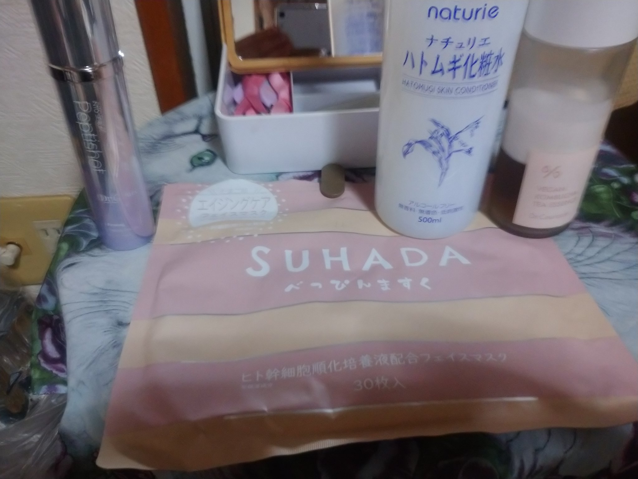 コスパ最高!!【使った商品】SUHADAべっぴんマスク選べて(30枚×2袋)899円✨1袋 500円もしない😄だいぶ前にqoo10で購入しました!今回はヒト幹細胞のフェイスマスク!他にもガラクトミセスとかあったのだけど、使ってしまいました。正...