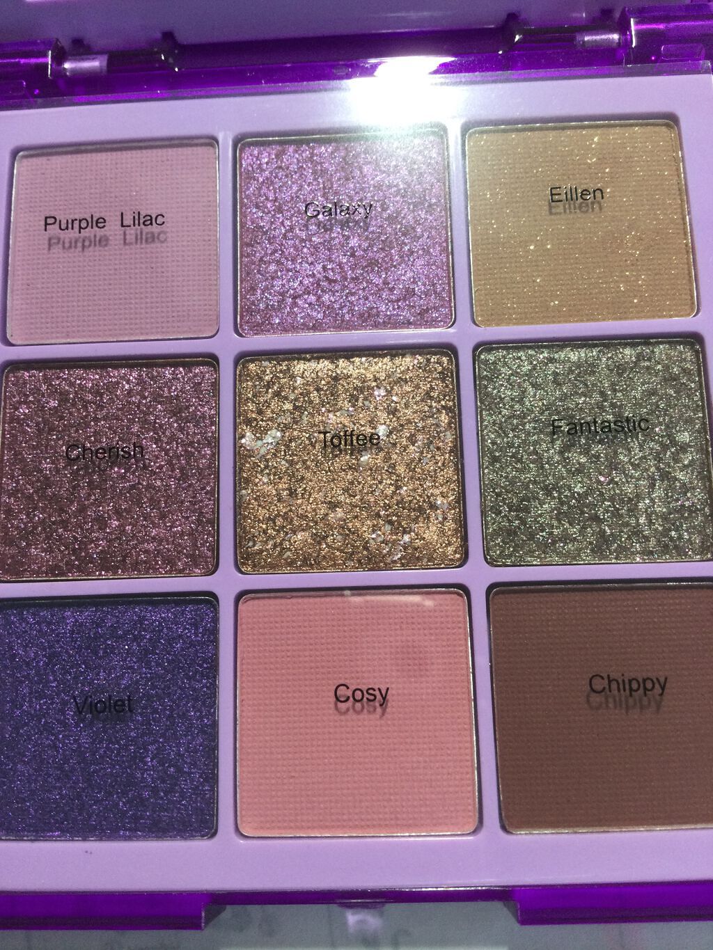 SHEDELLA9ColorsEyeShadowPaletteP102ToffeeToffeeとは、ナッツなどを入れて固めたキャンディの意味。P102は、パープル系です。マット3色、メタリック3色、パール、ラメ3色中段右は、緑っぽく見えてメタリックブラウンです。粉質はしっとりしてます。発色良いです。#SHEDELLA#9ColorsEyeShadowPalette##購入コスメレポ#ラメ愛好会#湿気に負けないアイテム#パケ大優勝アイテム