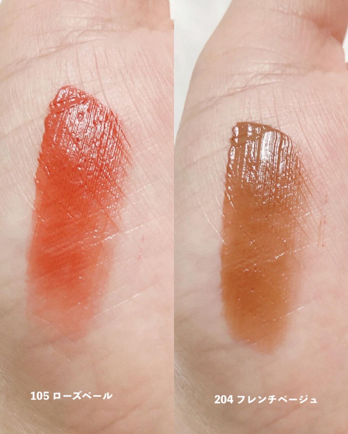 全12色のうち、気になるカラー6色をレビューしました! なめらかなベルベットのような質感で、唇の縦じわを埋めてくれるようなしっとりした塗り心地のティントです! マット系なのにうるおいがあってほんのりツヤを感じるような唇にしてくれます 𓂅 104/105はふんわり柔らかな花のようなカラー 204はグラデーションリップのベースにも使えそうな、肌なじみの良いカラー 204/205/206はひと塗りでおしゃれに決まりそうなカラー