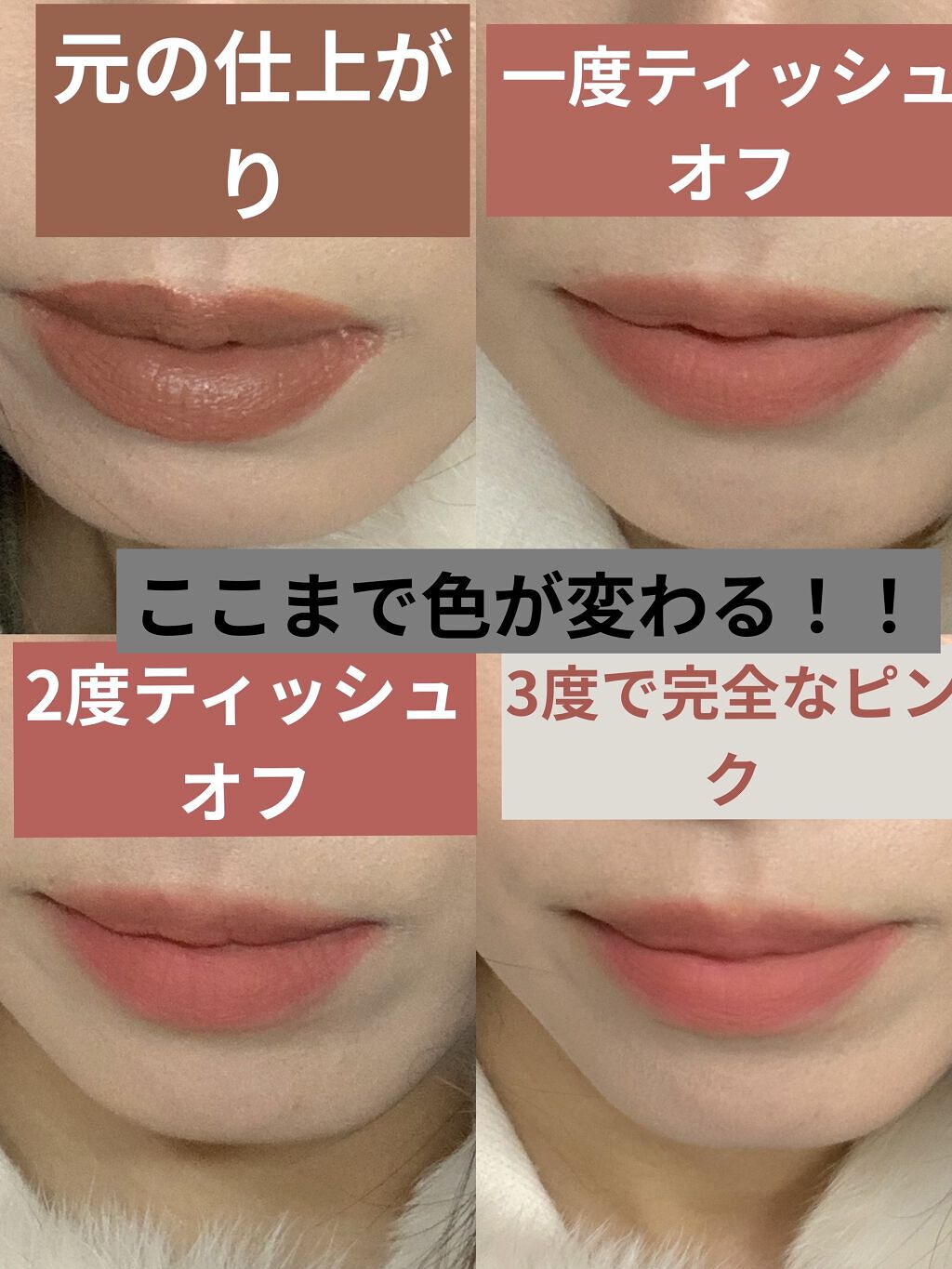 薄付き可能で、薄く付けるとピンク多めな仕上がり。 テクスチャーは、水分多めに見えて 伸ばす程に、サラサラとパウダーマットに変化!! 突っ張り感0 マットタイプが好きですが 色々使ってきたマットの中でも、縦皺が目立ちにくいテクスチャーで気に入りました! 色持ちも抜群!ナチュラルな色は、テイントされにくい物が多いので、他の色は分かりかねますが、 色はブルベ向けの冷たいピンクレッドですが、 春さんにも合いそう!夏、冬さんが好きなお色だと思います! パケは細身で、磨りガラスに見えますがガラスではなく触っていて気持ち良いケース