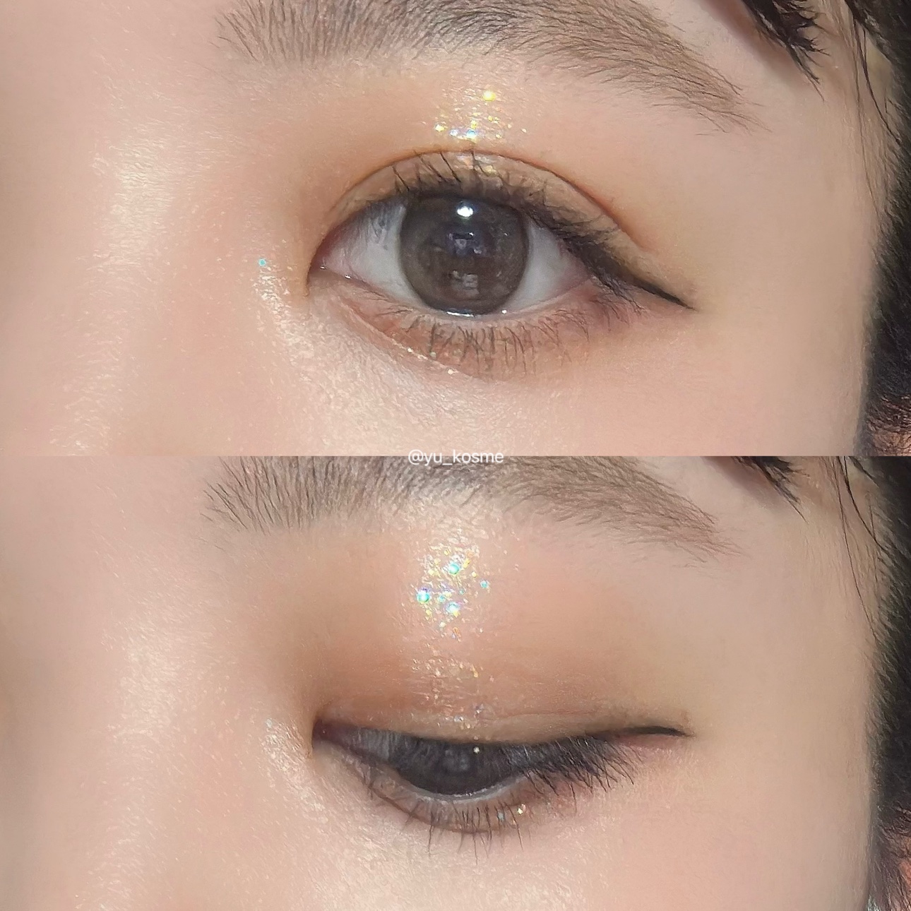 デイジークもラメは綺麗なんだけども、FORENCOSのグリッターでさらにラメ補強✨✊ フォレンコスのラメは本当に可愛いので、また今度別で紹介するね! グリッターアイシャドウが1本あるとメイクがもっと楽しくなるよ☺️💕 マスカラは繊細まつ毛に仕上がるデイジーク 、アイライナーは適度なコシのシアーズを使ってます 大人しい色味で統一しながらもキラッキラな目もとに仕上がって満足です🙌