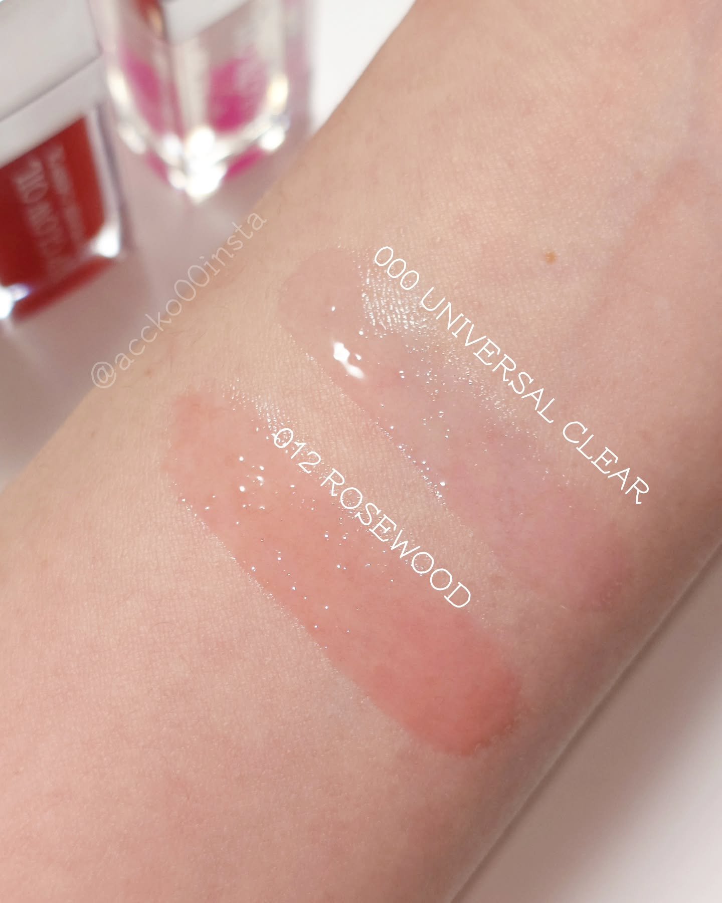 001ピンク はマキシマイザーのピンクと違いほんのーーり色付いててかわいいです🕊 000 ユニバーサル クリア はなにも色が付いてないです🕊これまた見た目が可愛い… この商品は、マキシマイザーとはまた違う重ためのテクスチャーのグロスです🌷 どの色も薄づきで、違うリップの上から塗ったり普段の保湿用でつかってます🪞♥ なによりパケが可愛すぎてつい集めたくなる❕