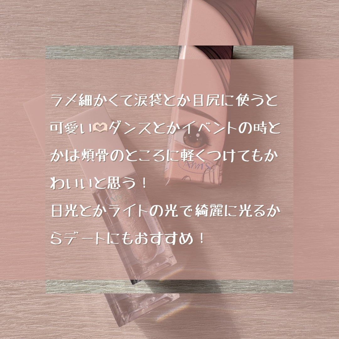 涙袋のところに少し付けるだけで可愛い♡ラメもしっかりしてて粒は大きめ、すごいつけやすい。ナチュラルメイクにも似合うしかわいいです。...