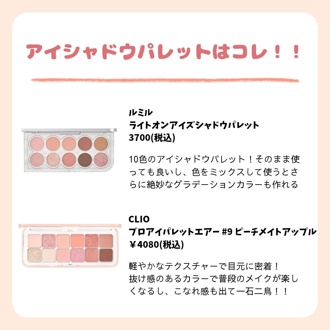 今回は【イエベちゃん向けコスメオタクが厳選した超おすすめコスメ8選】をご紹介します!!●CLIOプロアイパレットエアー・ふんわり軽い粉質で密着力が高い・捨て色なしの洗練された配色・発色も透明感があって重ねても可愛い●toocoolforschoolアートクラスフロッタージュペンシル・スティックタイプで簡単にぼかせる・アイシャドウ・アイライン・涙袋にマルチで使える・密着力が高くヨレにくい●EITHER&DewySyrupTint・シロップみたいなツヤ感と発色・うるおいが長持ちして乾燥しにくい・透け感があって重ね塗りで調整できる●ルミルライトオンアイズシャドウパレット・透明感のあるラメとグリッターが主役・光を味方につける華やか仕上がり・密着力が高く、粉飛びしにくい●NAMING.フラッフィーパウダーブラッシュ・フワッとしたソフトマットな仕上がり・粉質がきめ細かくて自然に溶け込む・色持ちも良く、ナチュラルに血色感をプラスお気に入りのコスメは見つかりましたか?参考になったら嬉しいです!!ぜひチェックしてみて下さい^^#CLIO#プロアイパレットエアー#toocoolforschool#アートクラスフロッタージュペンシル#EITHER&#DewySyrupTint#ルミル#ライトオンアイズシャドウパレット#NAMING.#ネーミングフラッフィーパウダーブラッシュ#日本限定色#Qoo10メガ割#こっくりカラーに夢中#新シーズンあか抜け計画