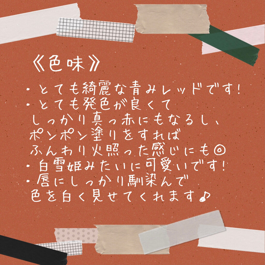 \さらさらマットな韓国リップ/マスクにつかない発色最高レッドリップ💄こんにちは!アフリカ少女です🐘(プロフィールに私の名前を書いてくださっている方はフォロバしますので、コメントで教えてください❤︎)《期間限定》フォロワーさん限定でInstagramのDMでメイク/スキンケア/恋愛の相談に乗ってます♪🔽こんな方にオススメ🔽☑︎発色の良い赤リップ、マットリップが大好き!☑︎お肌の透明感を上げて色白に見せたい!☑︎パウダーのようなサラサラふんわり仕上がりに憧れる!☑︎マスクにつかない高発色リップを探してる!*:.,.:*:.,.:*:.,.:*:.,.:*:.,.:*:.,.:*:.,.:*:.,.:*:.,.:*:.,.:*:.,.:*今回ご紹介するのは…✔️NAMING.ネイミングSMUDGESEMI-MATTLIPSTICKスマッジセミマットリップスティックRDC01FORCEFULフォースフルチェリーレッドです‼️(福袋はQoo10で3980円くらいで買えます!単品は私のインスタに飛んでいただくとURLからすぐ購入できます♪)こちらはネイミングの今年の福袋に入っているリップです!福袋の中身は最後の画像にまとめているのでぜひチェックしてみてください🙌めちゃめちゃお買い得で、韓国コスメ好きさんは必見です♪♪今回ご紹介するリップは、・高発色だけど色味の調整ができる赤リップ💄・サラサラふんわりした仕上がりが特徴💄特にテクスチャーは今までにないくらいサラサラでパウダーみたいな仕上がりなのでマット好きな方は感動すると思います!コロナ時代ではマスクメイクとしてもマットリップは重宝しますよね❤️*《色味・発色について》しっかり発色の良いレッドです!どちらかと言うと、黄みよりのレッドではなく青みよりのレッドなのでブルベさん向けです👌マットなのでカラーが似合う方が使った方がいいと思いますが、そこまでピンクみたいな青みの強さではないのでイエベさんでも使えないことはない気もします🤔ポンポン塗りをすると血色感だけを出せたり、発色の調整ができるのも嬉しいです!他のカラーだったらチークにも全然使えます👍👍普通のパウダーチークみたいな仕上がりだけどパウダーよりは落ちにくそうなのでチーク目的で買うのもアリかもです◎赤リップはやっぱり色白見せしてくれてお肌の透明感が上がる感じになるのでお気に入りです!*《テクスチャー・質感について》このリップは仕上がりが本当に素敵です💕セミマットという名前がついていますが個人的には完全にマットだと思います!本当にパウダーを上からつけたようなさらっさらな仕上がりになります🌷だから発色はいいけど元々の唇も生かしてくれて質感は良い意味ですっぴんみたいな感じなんです!ふんわり縁をぼかすのも簡単なので、簡単に無垢な感じのリップが作れちゃいます🌸塗っている最中も本当にサラサラで、スルスルとろけるように塗れるというよりはすべすべする感じで塗れます!普通のマットリップよりも粘度が少ない感じかな〜❤︎その分乾燥が気になる方もいるかもですがマットリップが好きな方は絶対試してみて欲しい質感です✨✨*こんなにサラサラすべすべに仕上がるリップは初めてかもしれないです!!福袋にこんなに可愛いリップが入ってるなんて嬉しすぎるのでぜひチェックしてみてください❤️色味も質感もとてもお気に入りです♪*:.,.:*:.,.:*:.,.:*:.,.:*:.,.:*:.,.:*:.,.:*:.,.:*:.,.:*:.,.:*:.,.:*最後まで見てくれてありがとうございました〜🥰後で見返したい!と思った方はクリップ📎してみてください🌸《Instagram》良かったらフォローお願いします♪💌インスタのDMで、恋愛/メイク/スキンケアの相談に乗ってます💌本気でオススメなコスメはインスタのURLからもチェックできて、そのまま購入できます!@africa_onnanokoです🐘《チャット》よかったら参加してみてください❤︎アフリカ少女のお部屋↓(半月に1回特に推しコスメを流します💌)https://lipscosme.com/chats/1ブルベ冬さんのお部屋↓https://lipscosme.com/chats/21共感した!参考になった!面白かった!という方は、いいね❤️、クリップ📎、フォロー👤、お願いします☺️ウォッチや通知もぜひオンにしてみてください☀️#マットリップ#さらさら#プチプラメイク#プチプラコスメ#プチプラリップ#赤リップ#パウダーリップ#韓国コスメ#韓国メイク#韓国リップ#スクールメイク#福袋2021#高発色リップ#ブルベメイク#ブルベコスメ