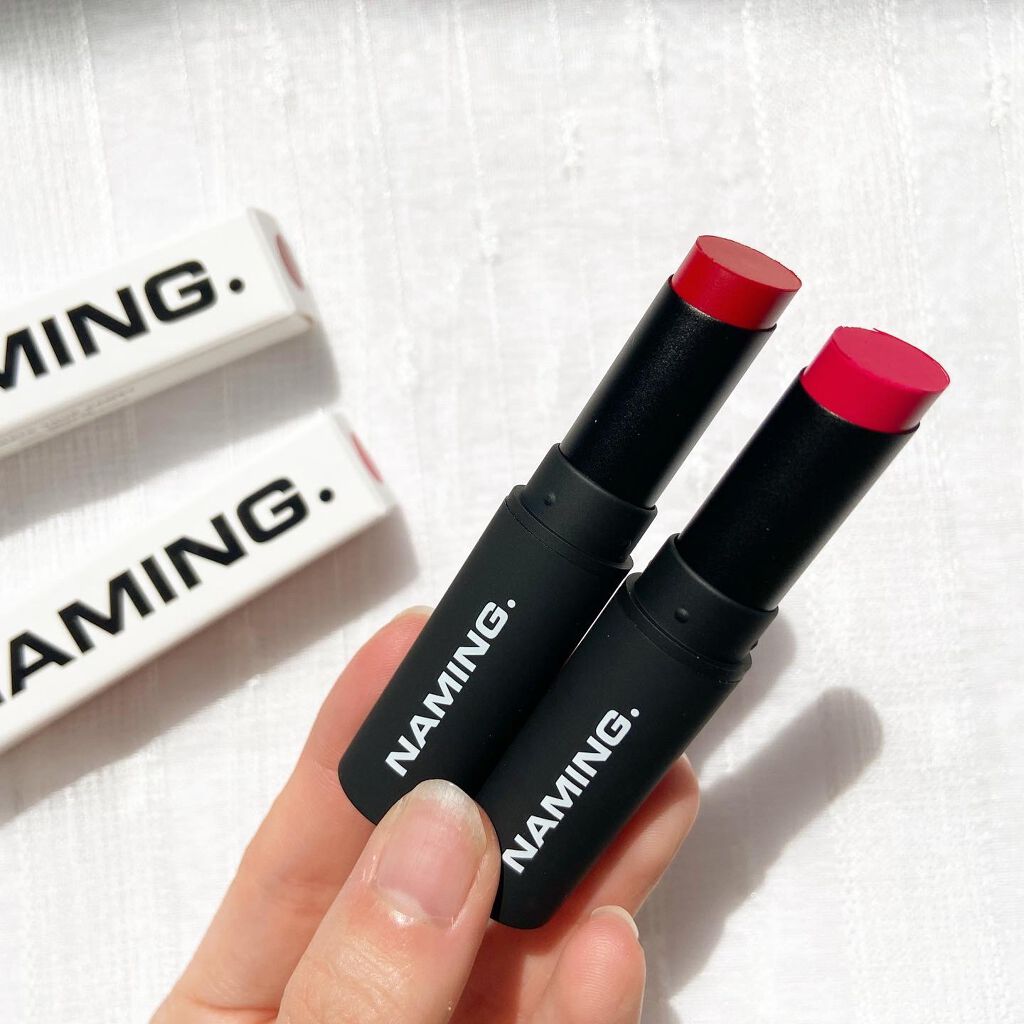 ✔️NAMING.スマッジセミマットリップスティック/BGW01FAITHFULヌードベージュ/PKM01SUGGESTIVEマゼンタピンク とびきりクールなマットリップ。シンプルなファッションにさらりとつけたい♪NAMING.さん@naim...