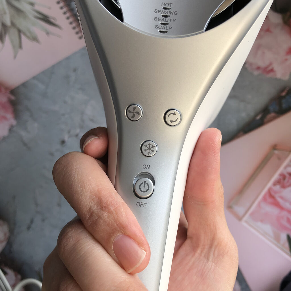 乾かす時間が短縮、髪もツルンツルンになって感動のドライヤー!購入して2ヶ月ほど経ちました。カラーはソルベホワイト。簡潔に気に入ってるポイントを!🌸風がそよそよ気持ちいいのに、強くてすぐ乾く!ロングの髪、乾かす時間が以前の1.5倍くらい速くなった!🌸持ちやすい。ドライヤーのノズルが長くないから、首がカクンとなる心配がない。🌸温風が暑すぎない。髪に吹き出し口を近づけても変わらない温度を保ってくれる。🌸温風と冷風が交互に出るビューティモードを使っていますが、髪がつるつるになった。🌸デザインがお気に入り。折り畳まなくていいのでサッとしまえて便利。🌸光の色で温度がわかる。その他🌿重さは普通。いままでのドライヤーと変わらない。重くはない。🌿音の大きさも普通。以前使っていたドライヤー、モンスターに比べると少し小さい印象。悩んでいる方、おすすめですよ〜🥰