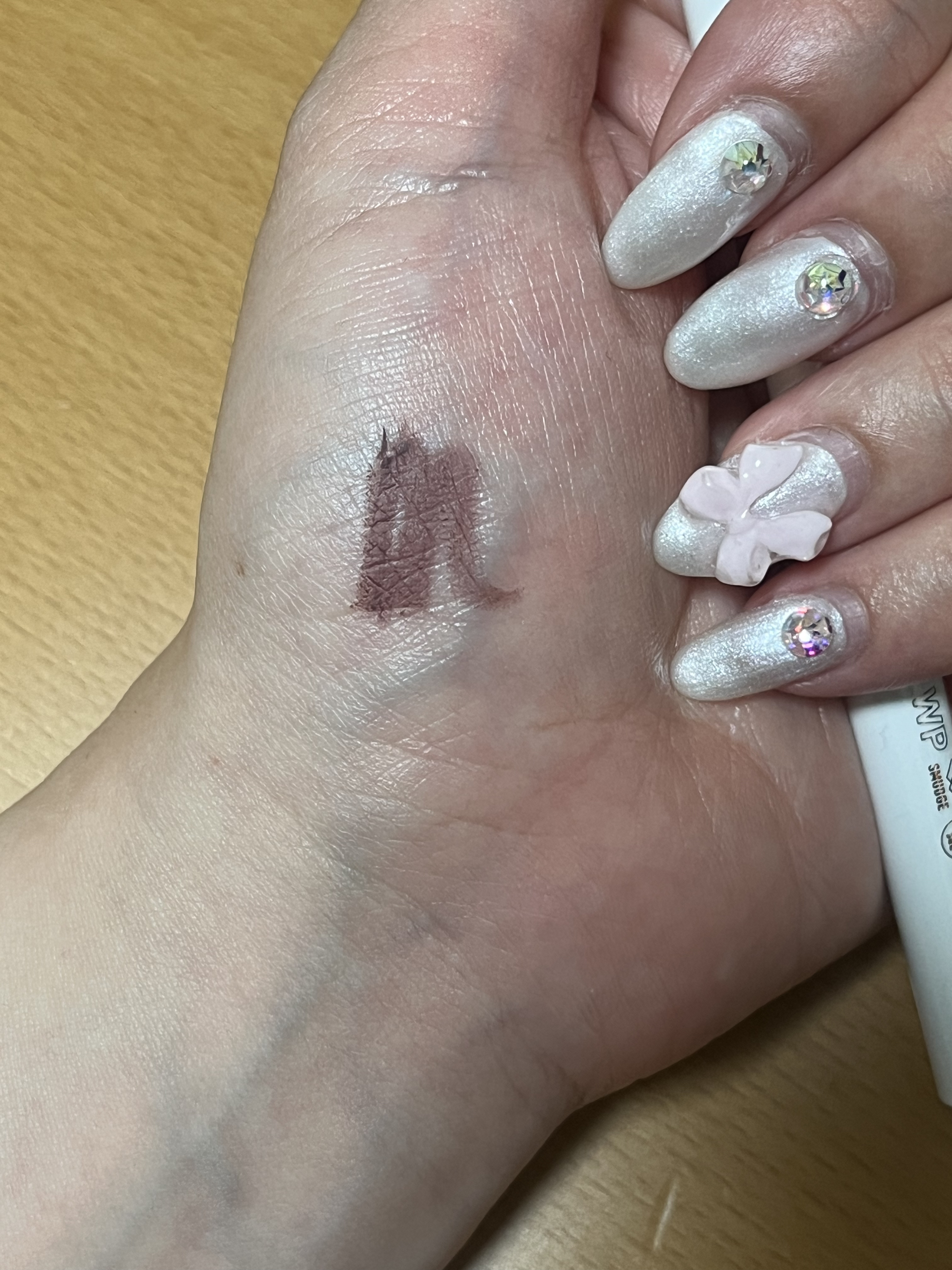 華やかだけど派手になりすぎない赤みがかったブラウン. オンニもオフにもいけそうなカラーで、秋って感じのカラー!すごいかわいい♡ふわっとした感じに色づくので、優しい印象に仕上がるのも良い感じ. こういうのって出したら戻せないタイプが多いイメージだったけど、繰り出しすぎても元に戻せるのはかなり良い感じ. 1.5×3mmの楕円形の芯なので、角度を変えるだけで太さも細さも自由自在! 滑らかでするするかけるので、手直しも簡単で良いし、色素沈着なしの、ラインも一日中にじまなくてWプルーフ設計なので多少の汗も結構平気でした. 美容成分も配合されてるらしいので、全色揃えたい!