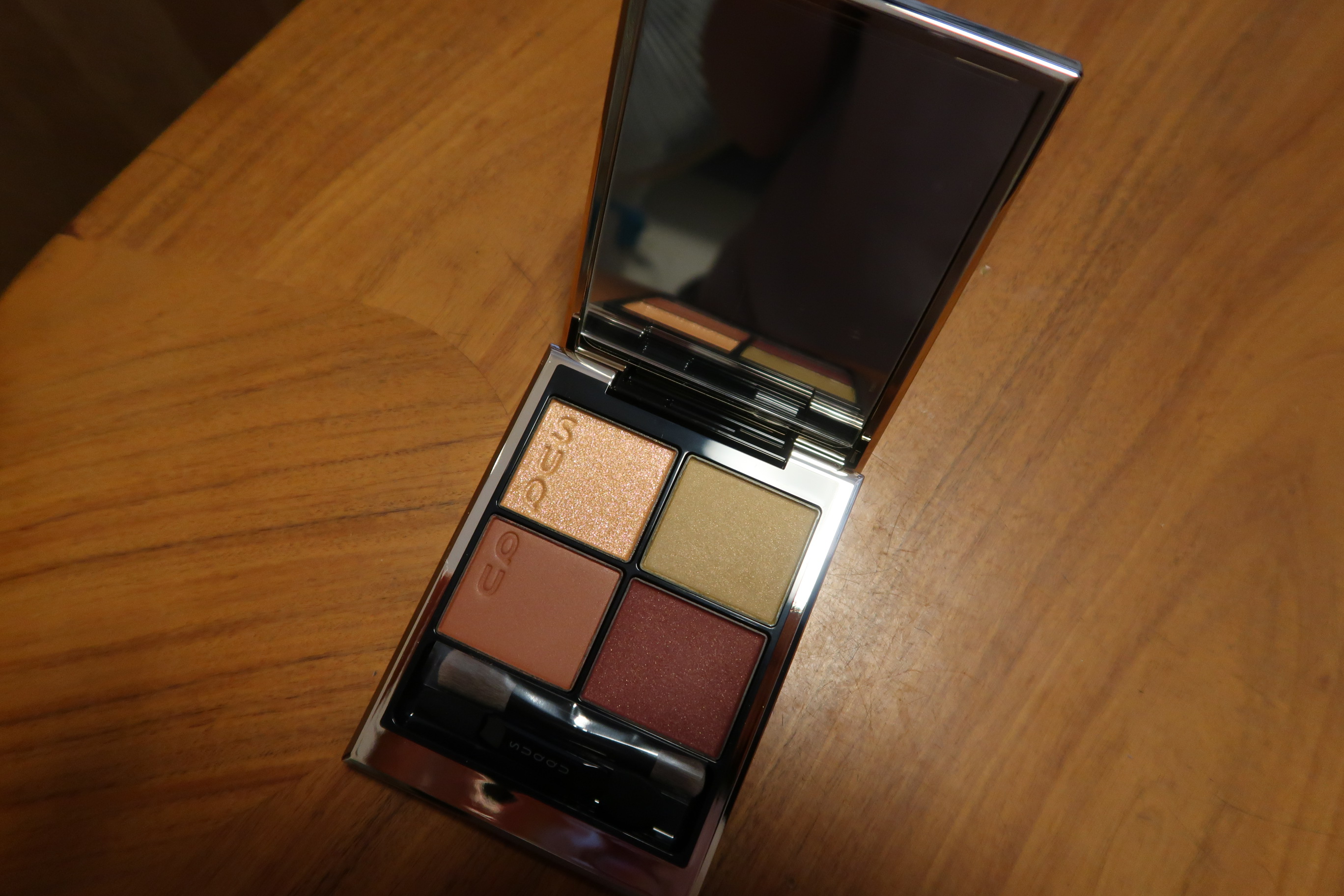 SUQQUで初めてガチで並んだコスメです(まだアイシャドウのみだった・・)お洒落なパレットですが、右上の緑は左上黄色をアイホール全体に敷かないと事故る。ちょっと使いづらい💦すごい争奪戦だったなあ。。これでSUQQU沼にしばらくハマります。。