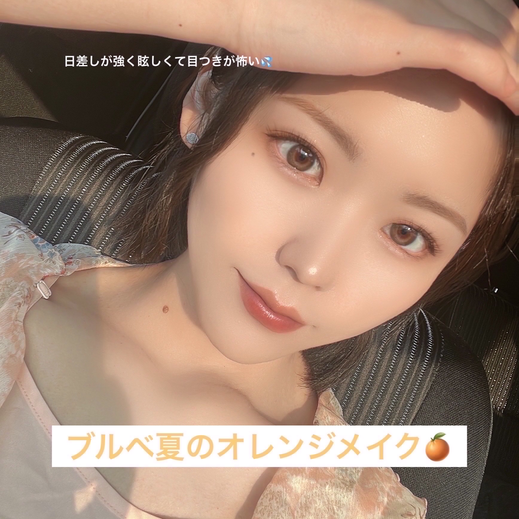 【ブルベ夏の私が浮かないオレンジメイク🍊】今回はオレンジに見えるオレンジを使わないオレンジメイクレシピをご紹介していきます☺️私は特に鮮やかなオレンジが似合わないですがど〜うしてもオレンジメイクをしたかったのでオレンジが似合わない方は是非ご覧ください😊青み吸収する方向けの方法になります✨️※今回もポイントメイクのみです😘それではメイクスタートです🍹✼••┈┈••✼••┈┈••✼••┈┈••✼••┈┈••✼【使った商品】i’mmemeマルチキューブ001スウィートピンク¥1,870rom&ndシアーティンテッドスティック07ベアアップル¥1,540【手順】1.スキンケア後ベースメイクとコントゥアまで 終わったらマルチキューブの5番チークを使い 日焼けチークと鼻先、顎先、唇の山にも入れる シャンパンカラーのハイライトを入れるとより 夏っぽくて瑞々しい肌の仕上がりになり可愛い 夏は野外では暑くて皮脂や汗で崩れやすいので 私はいつもBBクリームを薄〜く塗ってパフで よく叩き込む。カバー力高めのものがおすすめ2.眉毛、目元、Tゾーン、顎にパウダーを塗る アイブロウはブラウン系で毛並み感を大事に アイブロウペンシルとアイブロウマスカラで スクリューブラシ等でぼかしながらササッと 上瞼のメイクは3番を目の際にまず塗って アイホールに1番を塗ってその中間に2番を 塗ってワイパーでぼかす。4番を中央に塗る 下瞼は1番を目尻から目頭にふわっと塗って 2番を目の際に目頭~目尻と涙袋の影も塗る ライン状に引いて目尻は少し空間を空ける〇 3番で目頭、目頭を2番のラインの上に重ねる3.ビューラーをしてブラックのロングマスカラを 上下睫毛にたっぷり塗ったら優しいブラウンの アイライナーを目頭と目尻にササッと引いとく4.リップはシアーティンテッドスティックを塗る 下唇は内側をたっぷり塗って外側に軽くぼかす 上唇は全体的にたっぷりと塗って山を潰したら 内側だけ濃く塗って若干M字になるようにする5.全体的に見て浮いてたらチークを広範囲に めちゃくちゃ薄〜くぼかす。薄くするのがコツ【ポイント】私は青みを吸収するブルベのタイプなのでコーラル寄りのピンクを使うとオレンジにベースメイクは薄く日焼けチークで夏感をアイシャドウを乗せる順番を変えて色味の出方を調整するとオレンジっぽい仕上がりに✼••┈┈••✼••┈┈••✼••┈┈••✼••┈┈••✼マルチキューブのスウィートピンクを使うとオレンジっぽくなる青み吸収の特性を活かして私が浮かないオレンジメイクをしてみました🍊リップもニュートラルカラーを使うとなぜか黄みに傾くのでシアーティンテッドスティックベアアップルを塗りジューシー感を出しました💋最後までご覧いただきありがとうございます🍀#韓国コスメ#アイメイク#プチプラコスメ#涙袋メイク#アイシャドウパレット#コスメ#プチプラ#韓国メイク#メイク#ピンクメイク#マルチパレット#涙袋#ロムアンドリップ#リップスティック#ブルベメイク#韓国リップ#ブルベ夏#リップティント#アイシャドウ#チーク#韓国#オレンジメイク#コスメレビュー