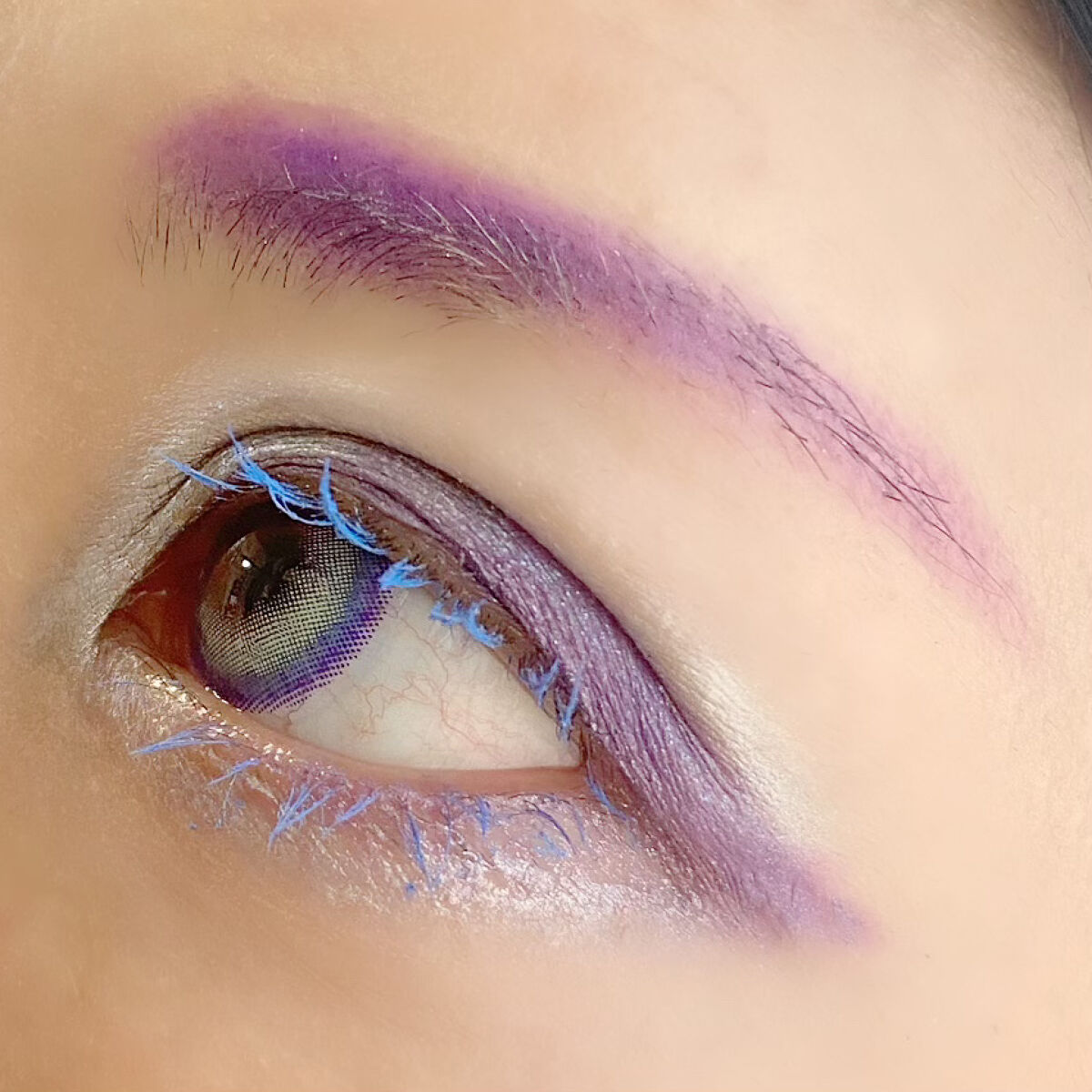 お気に入りのヴィセ アヴァン シングルアイカラーの051DIAMOND METALはとにかくきらびやかなシルバーなので、どんな色にも合わせやすいです👌 今回はColourPopのLilac You A Lot Shadow Paletteで紫を目尻にいれて、ほとんどをDIAMOND METALのシルバーにしました❤️ そして!Qoo10で買えるHANDAIYANのカラーマスカラ。発色やばやば! 今日このメイクをしたのは、このつけてるカラコンに合わせたくてなんです😘😘 めちゃくちゃかわいくないですかこのカラコンは!!!