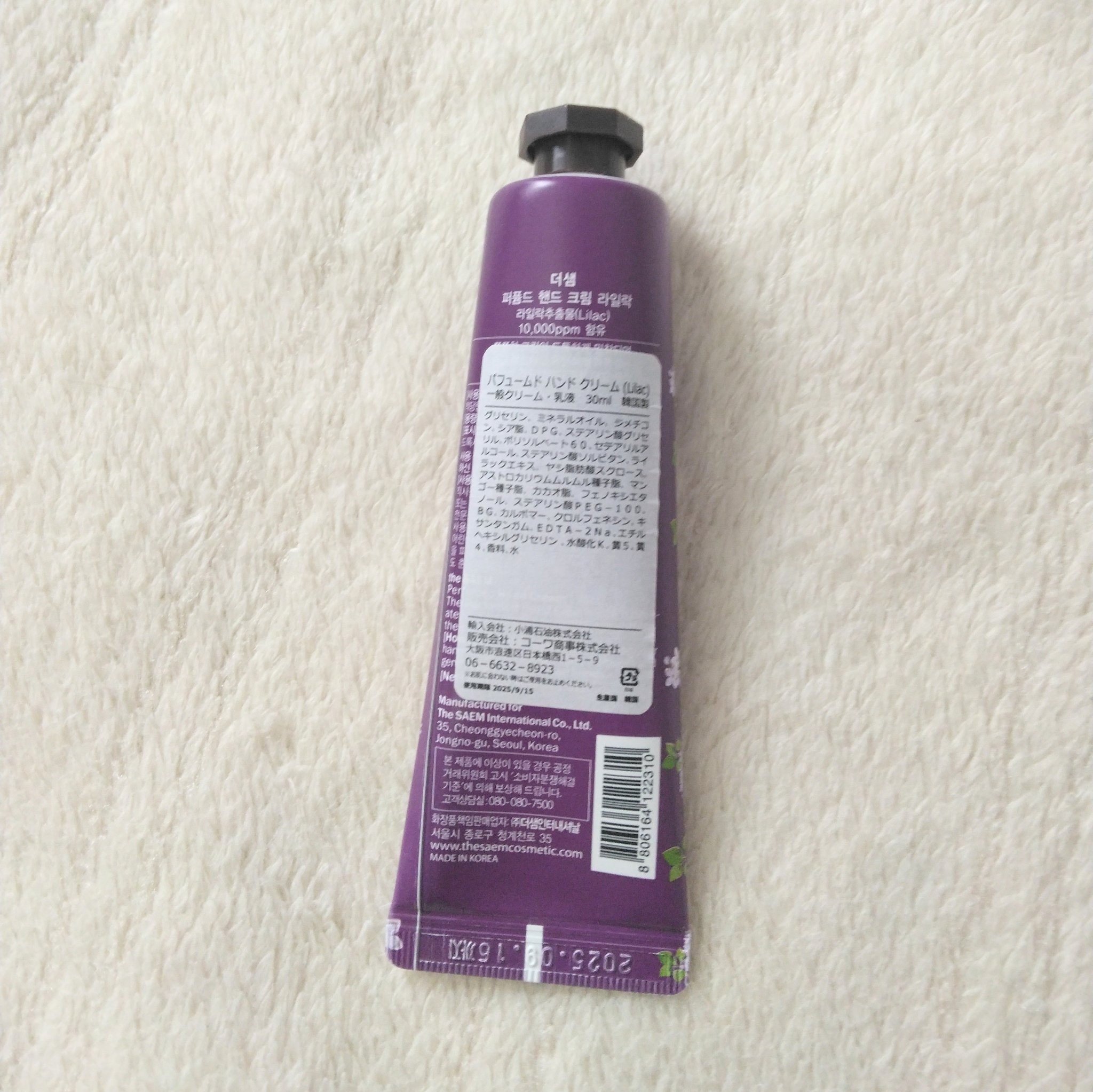 theSAEMパフュームドハンドクリーム ライラック 30ml¥473#ハンドケア韓国製のハンドクリームパフュームドハンドクリームを使い切りましたライラックという香りでバスクリーンのような印象的な香りでした寝る前やリフレッシュしたいときなど...
